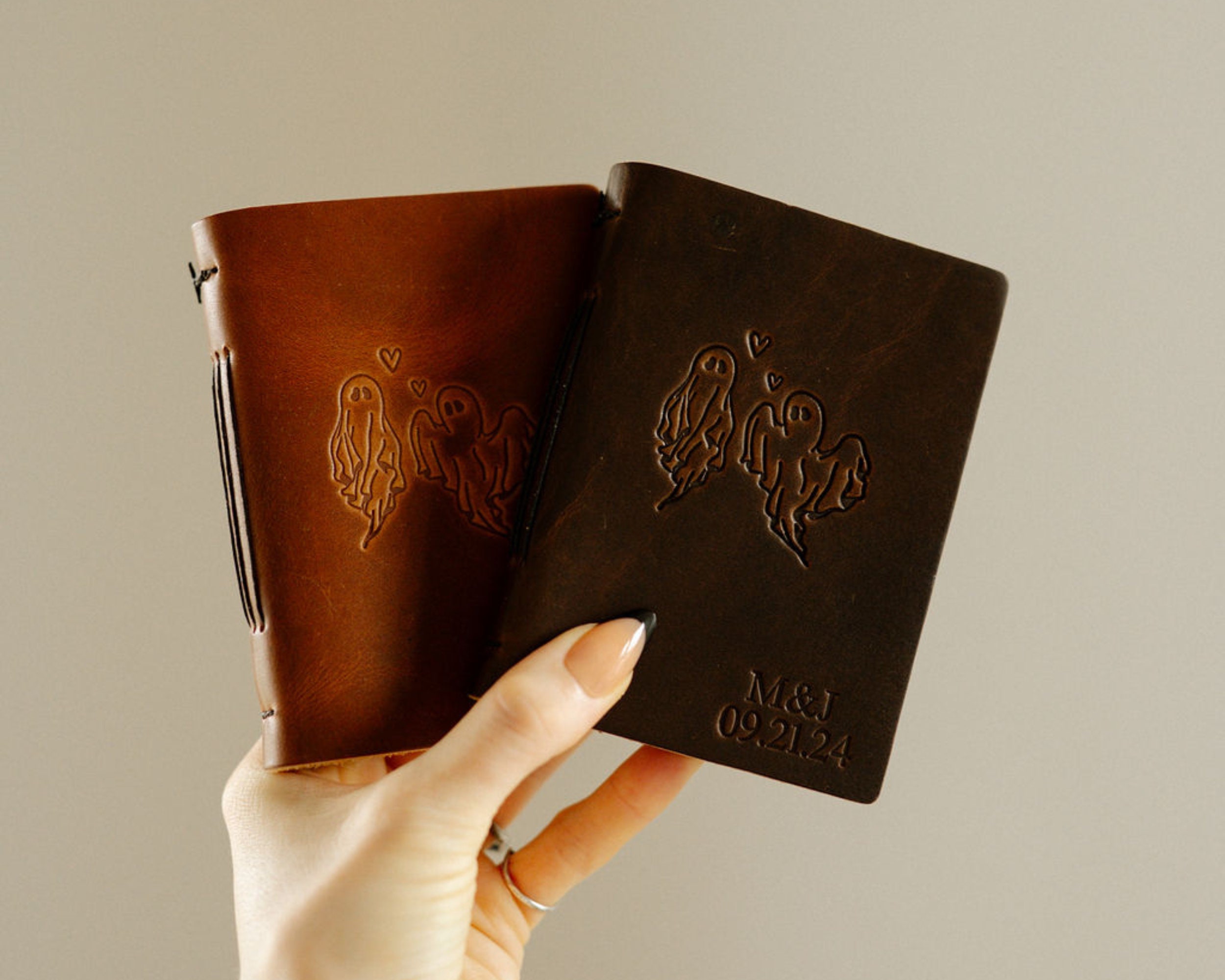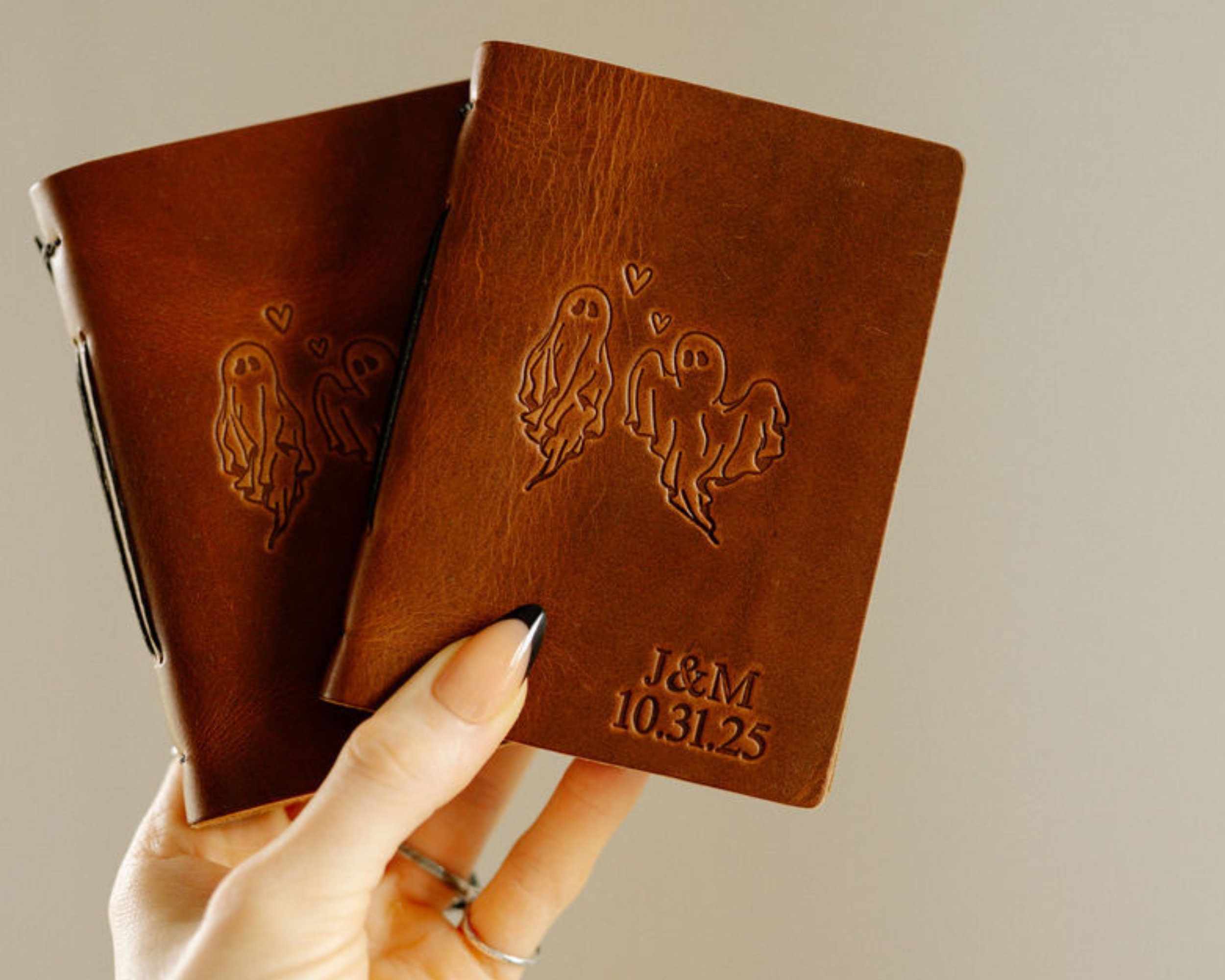 Alternative Wedding Vows Books with Ghosts and Custom name, date or initials, Halloween Elopement Ceremony Keepsake, Personalized Goth Gift