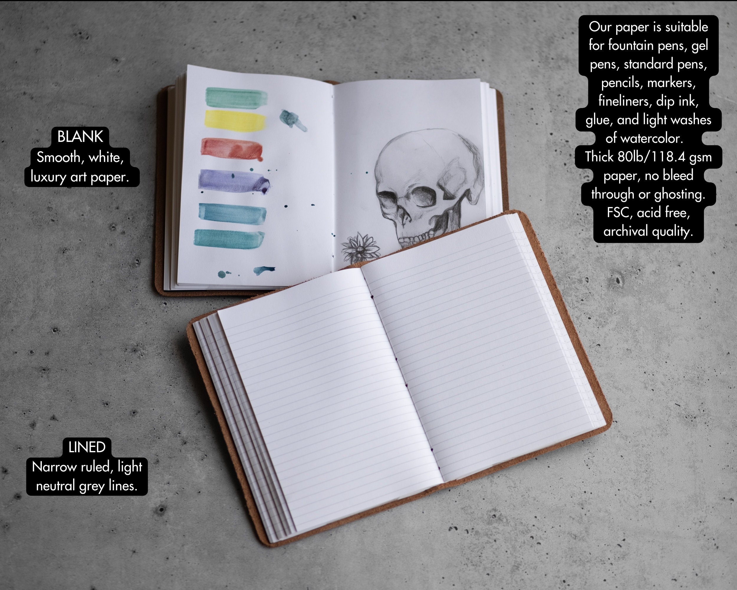 ▸ Acid free archival quality paper, bound by hand
