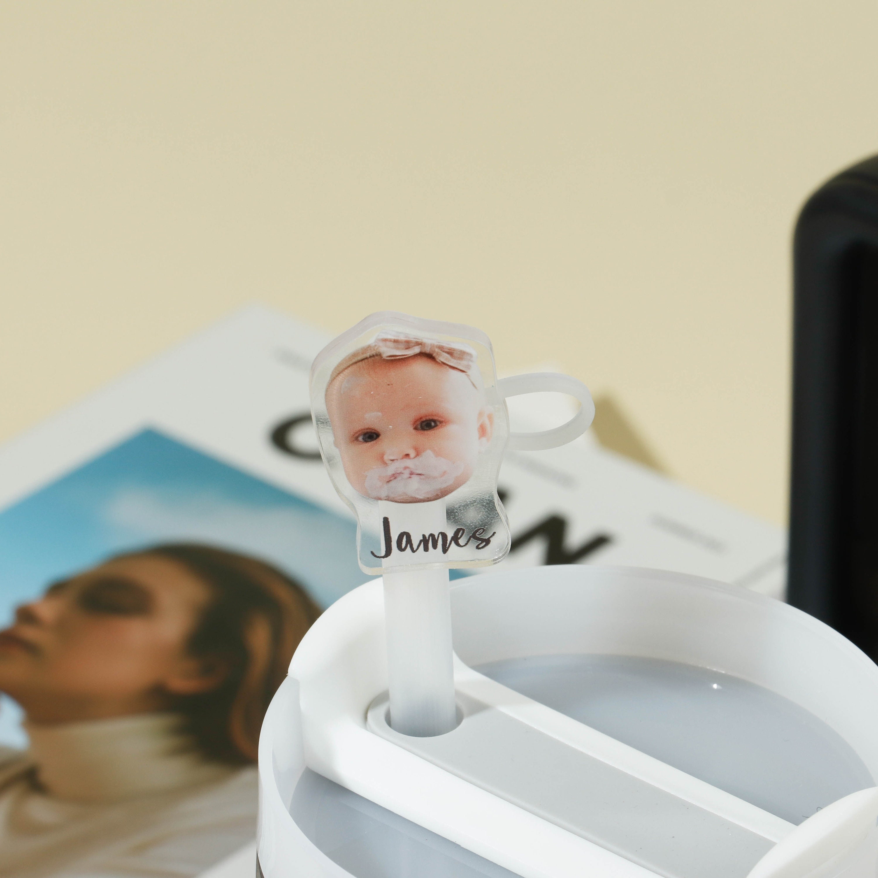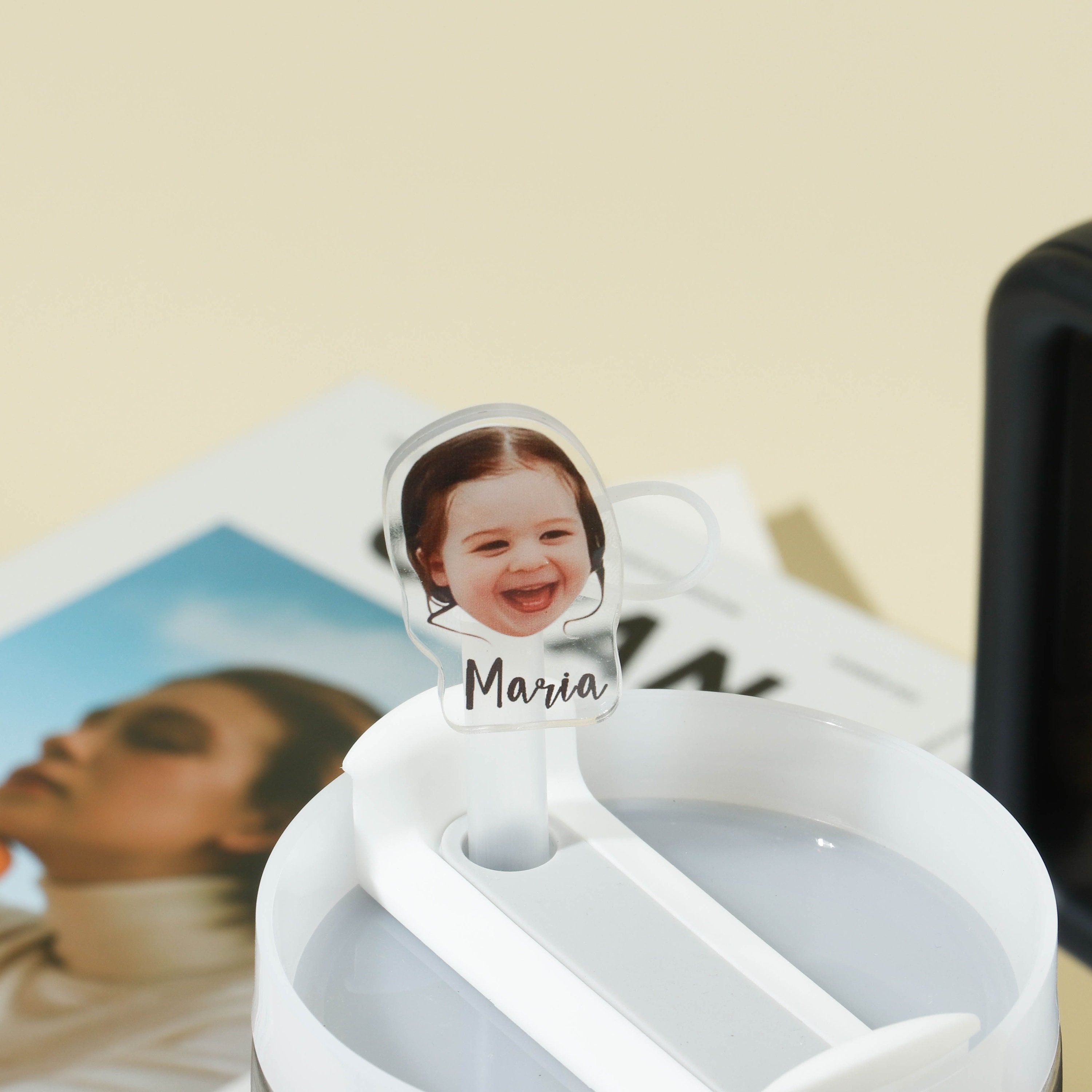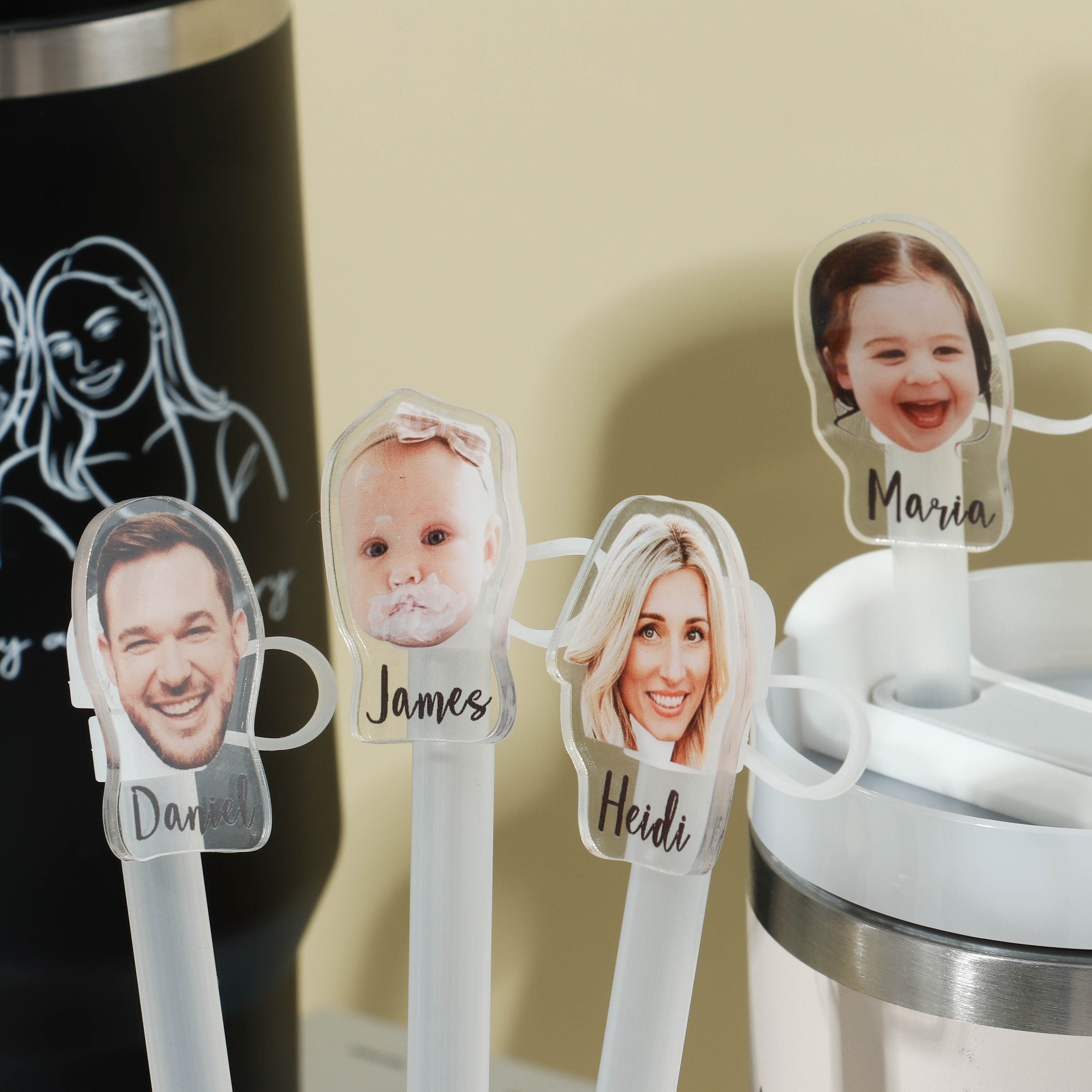 Introducing our newest accessory! Transform your kid's or family photos into adorable Straw Toppers. These cute faces will accompany you throughout the day, bringing joy every time you see them. Our durable and eco-friendly straw cap features a delightful design, keeping your tumbler safe from dust, bacteria, and bugs.