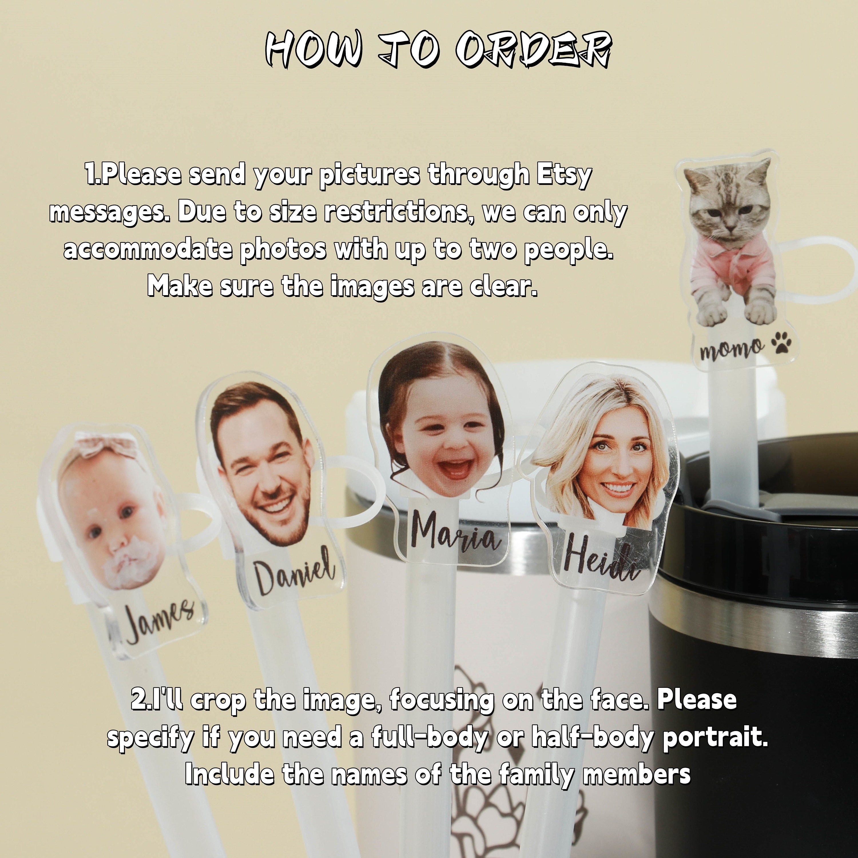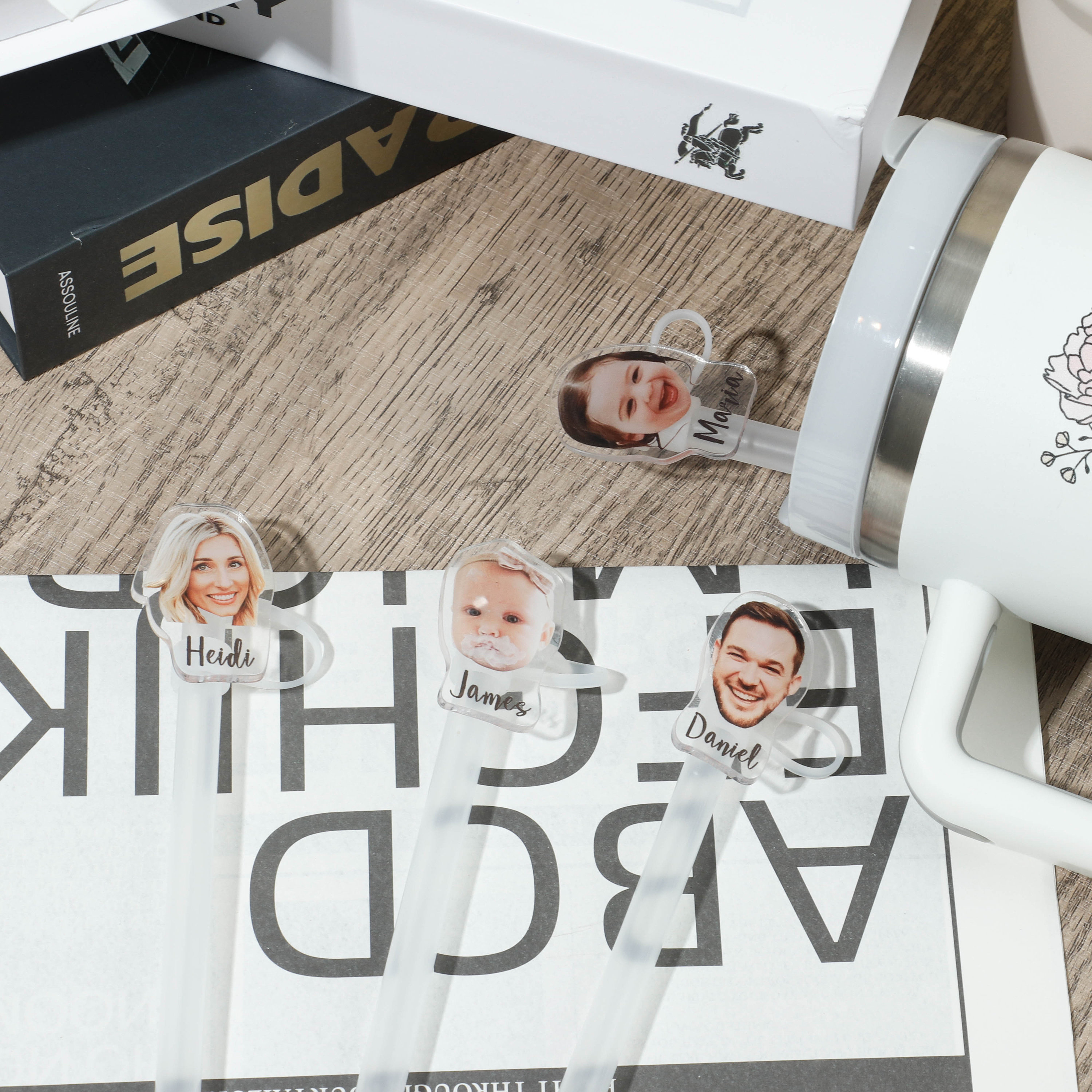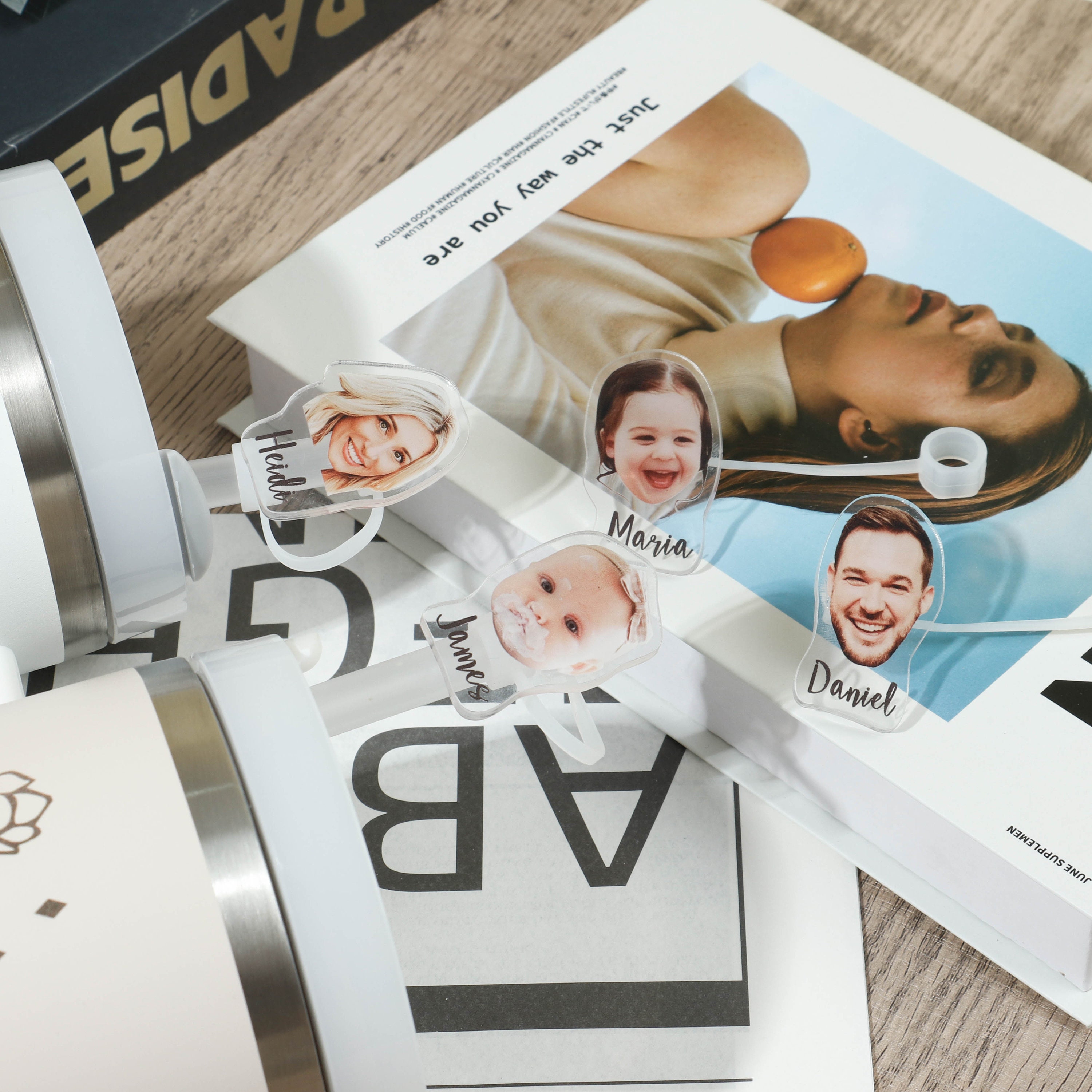 Introducing our newest accessory! Transform your kid's or family photos into adorable Straw Toppers. These cute faces will accompany you throughout the day, bringing joy every time you see them. Our durable and eco-friendly straw cap features a delightful design, keeping your tumbler safe from dust, bacteria, and bugs.