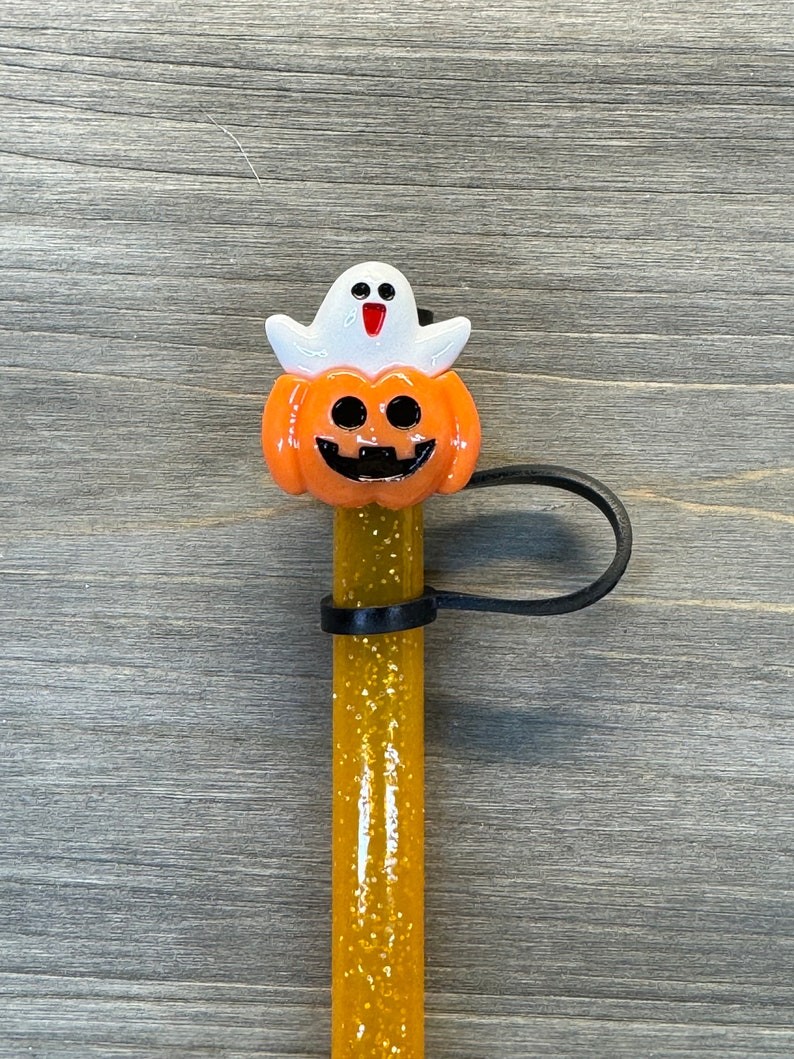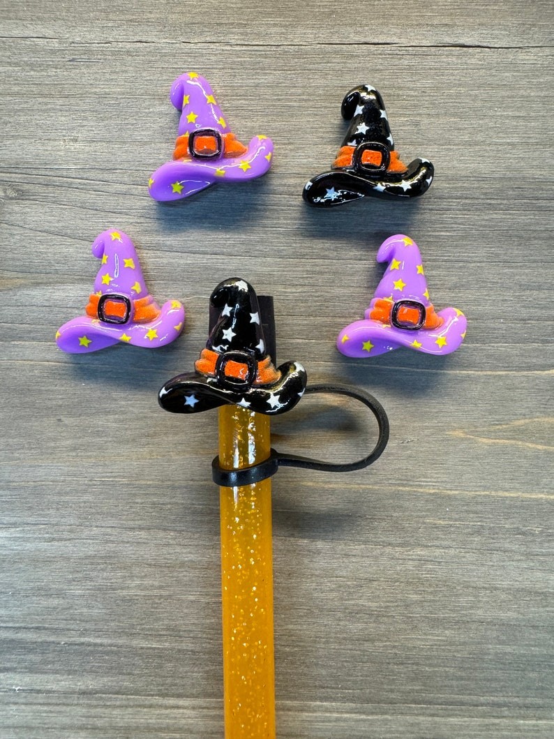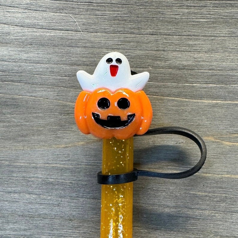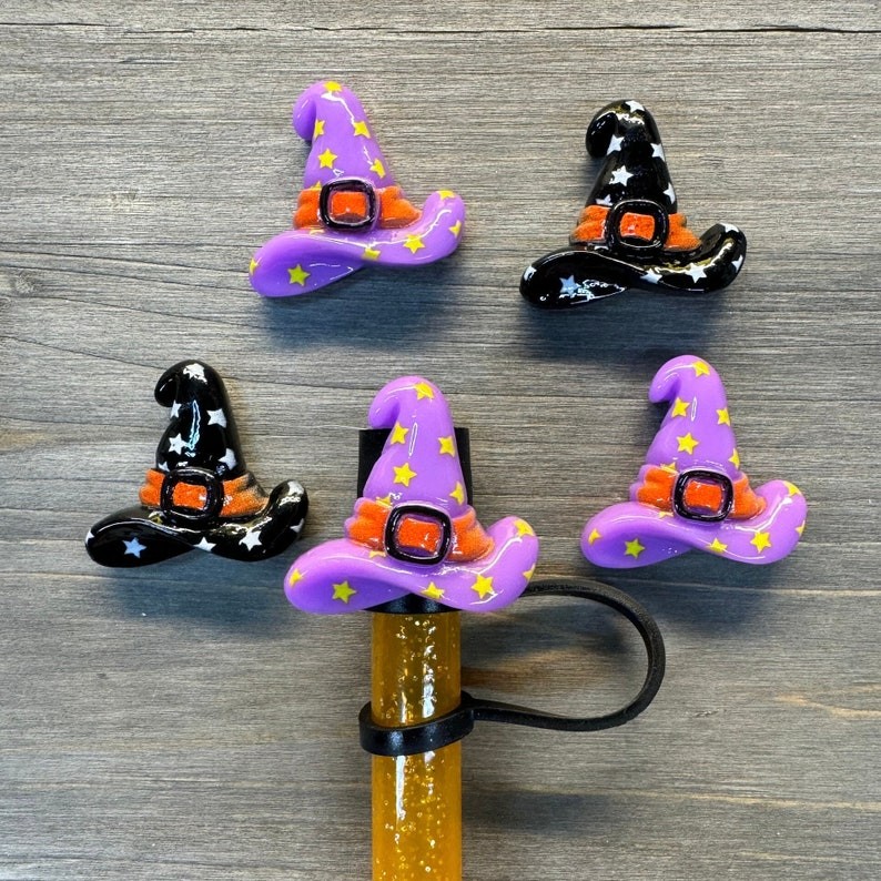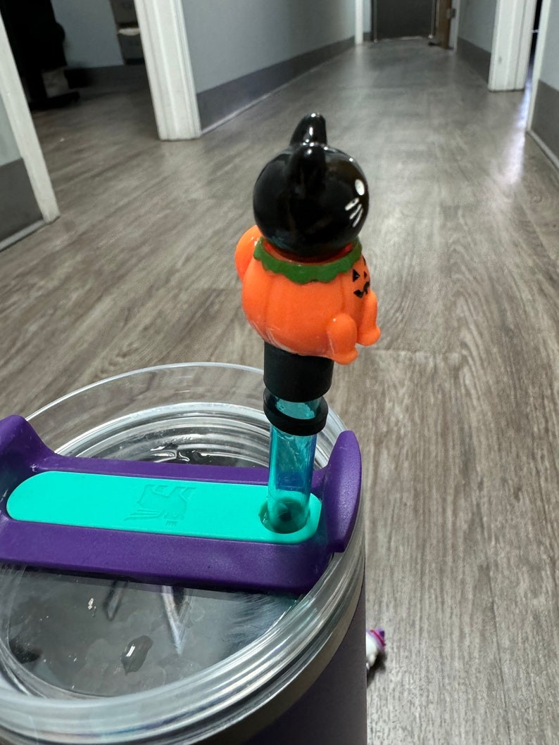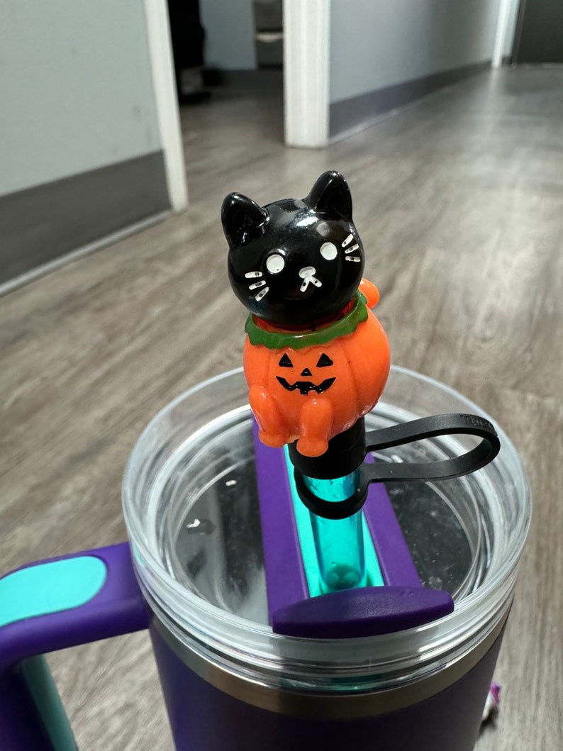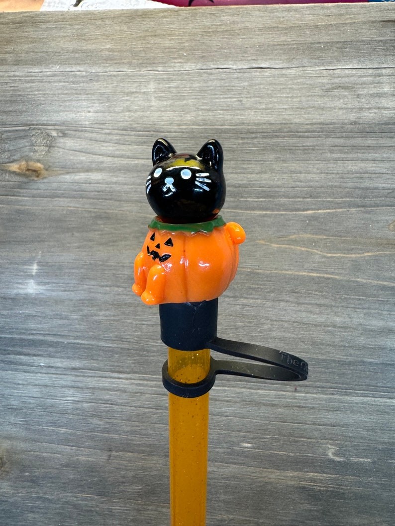 Halloween Straw Cap,Candy Corn Straw Cap,Cat in Pumpkin,Halloween Accessories Straw Toppers Cup Accessories