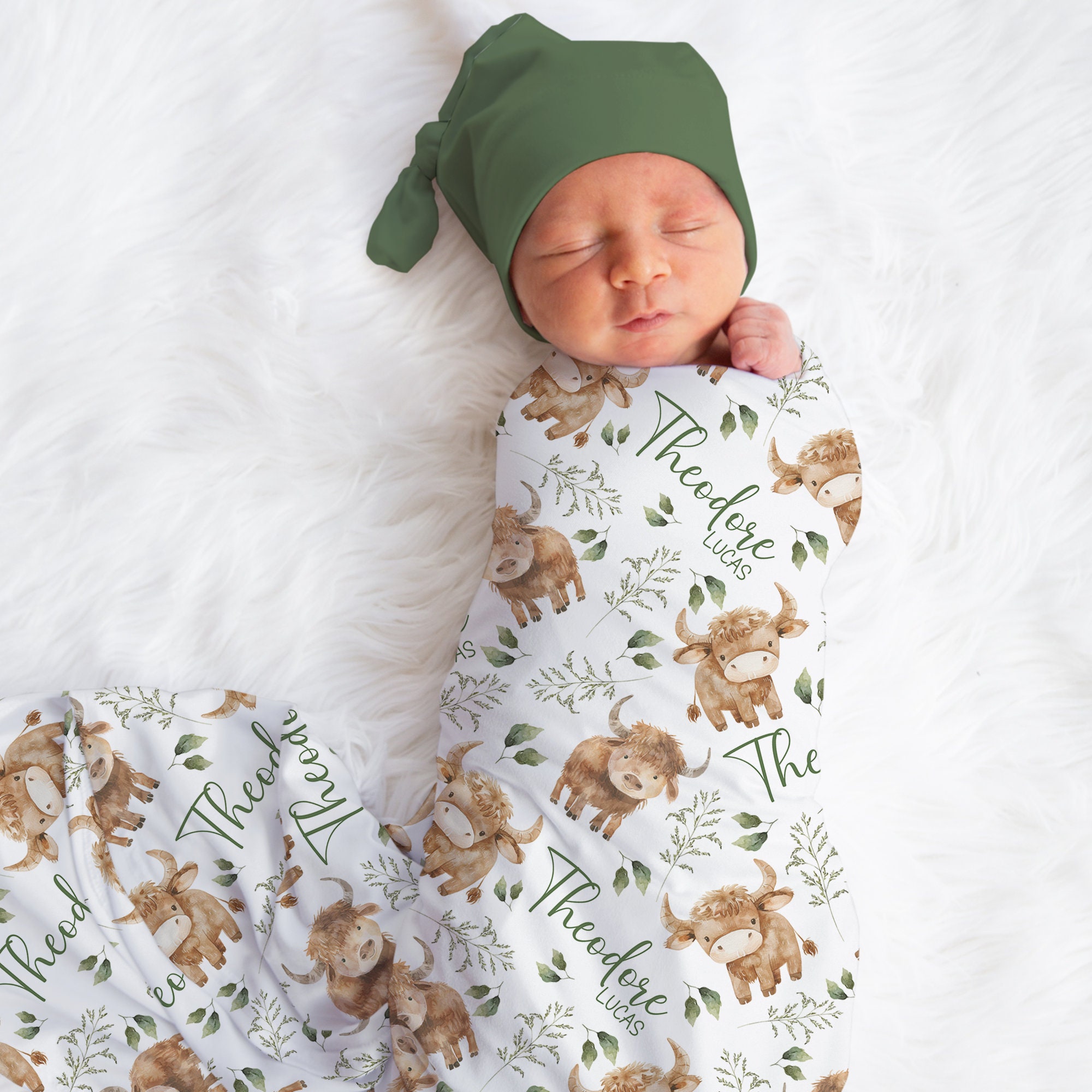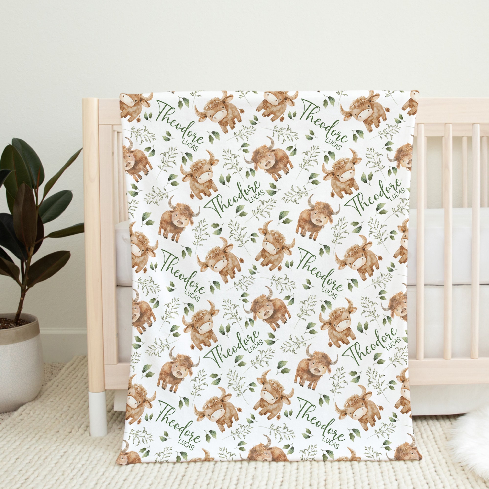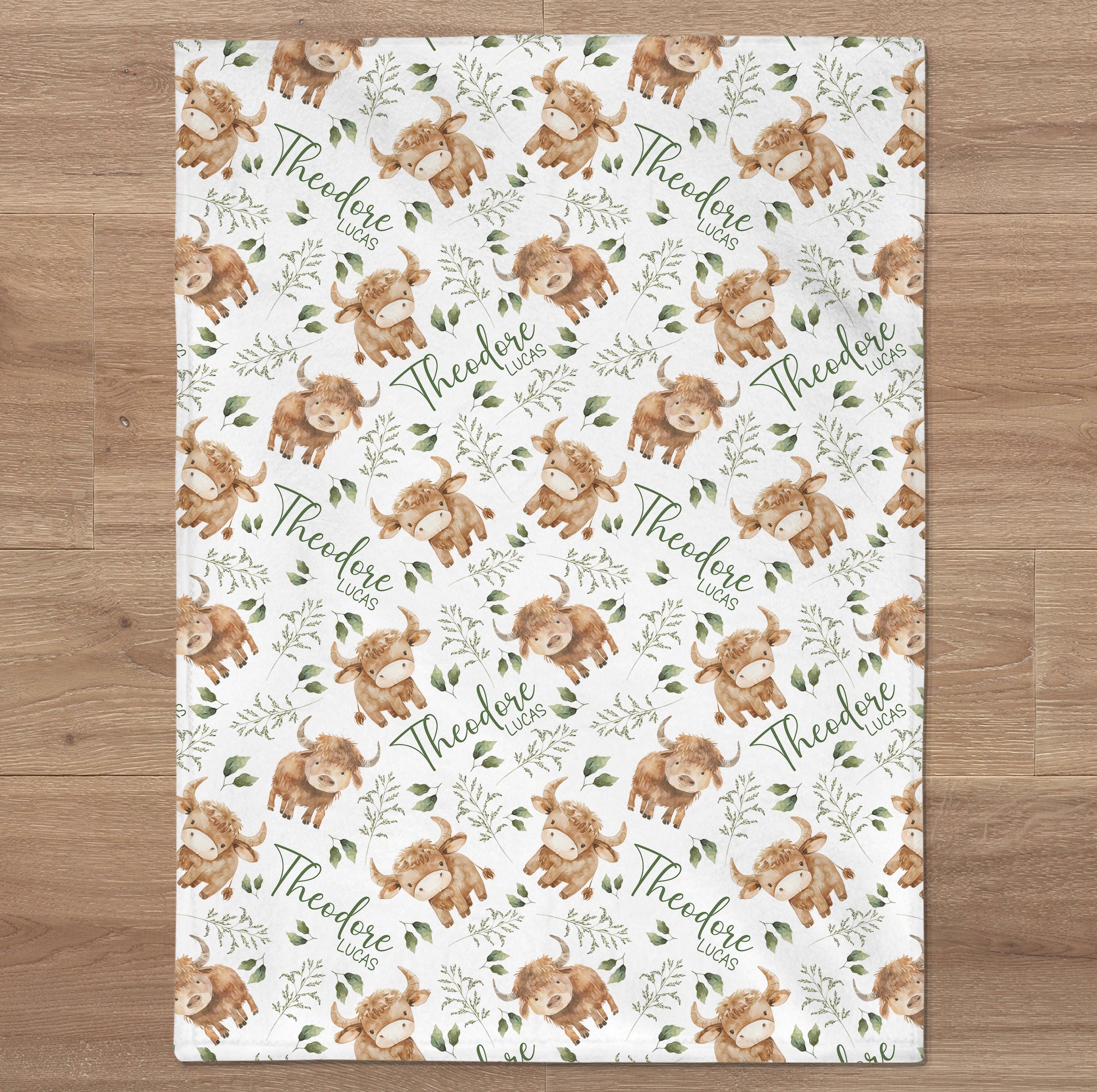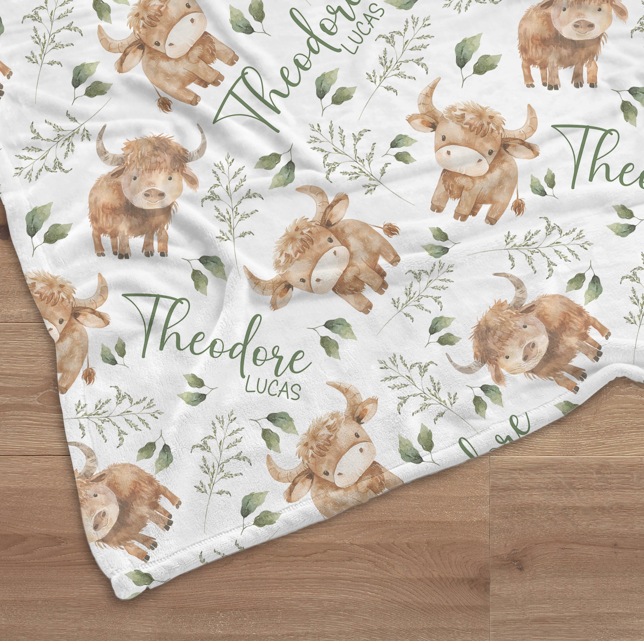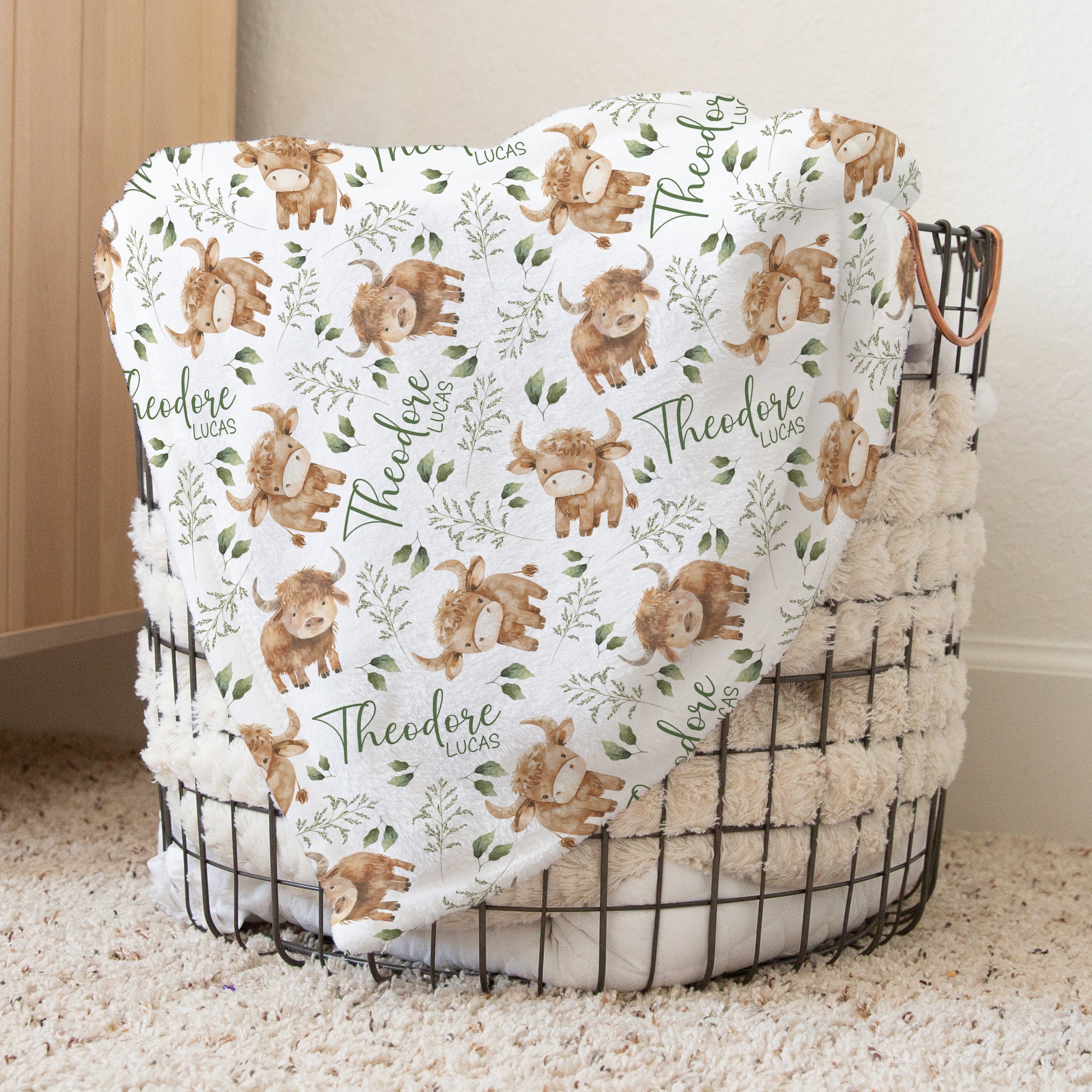 ❤️20% off ❤️Custom Highland Cow Baby Name Blanket, Personalized Farm Swaddle Hospital Blanket, New Mom Gift Newborn Gift, Baby Shower Gift, Toddler Blanket