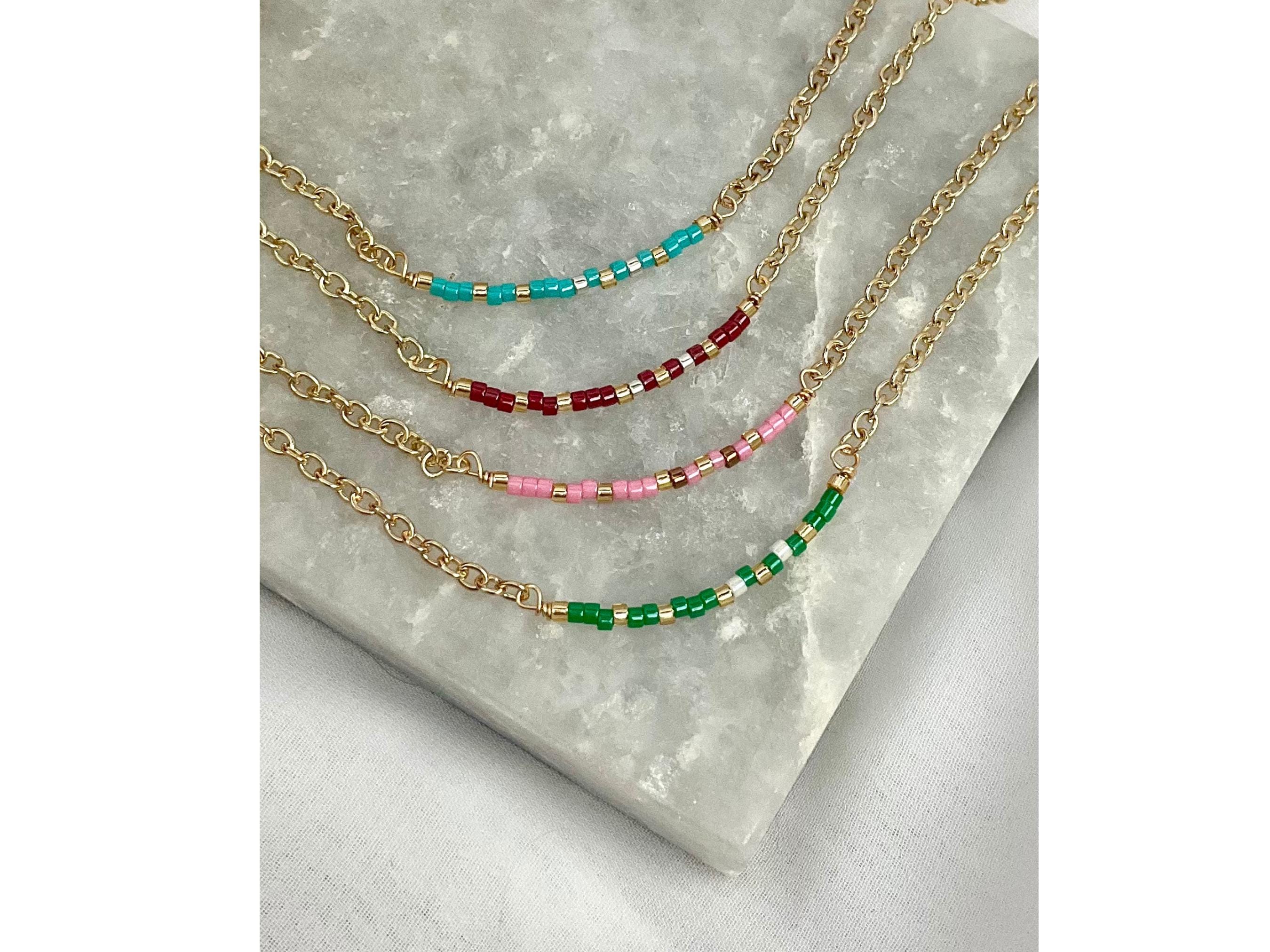 Customizable Sorority Necklace – Handmake Beaded Chain Necklace – Personalized Greek Jewelry – “Sisters” Morse Code Necklace – Gold Chain