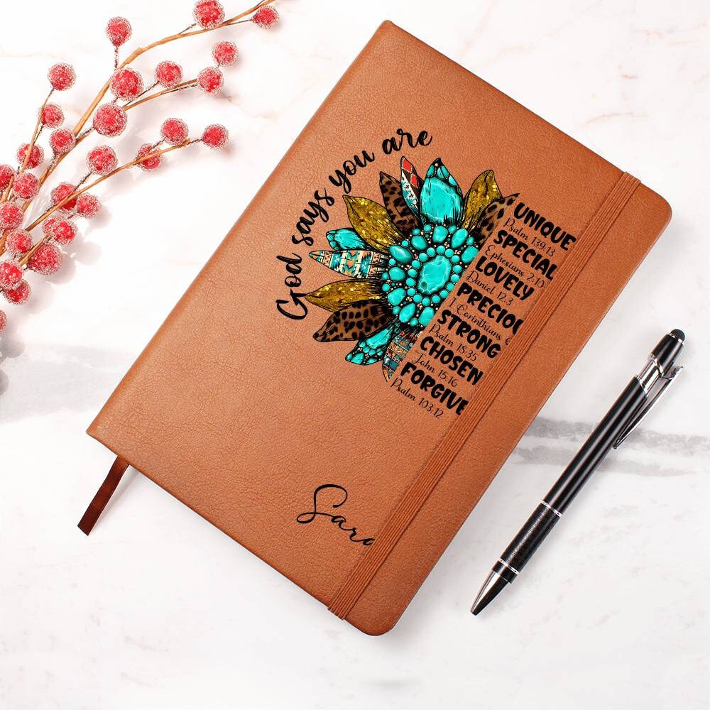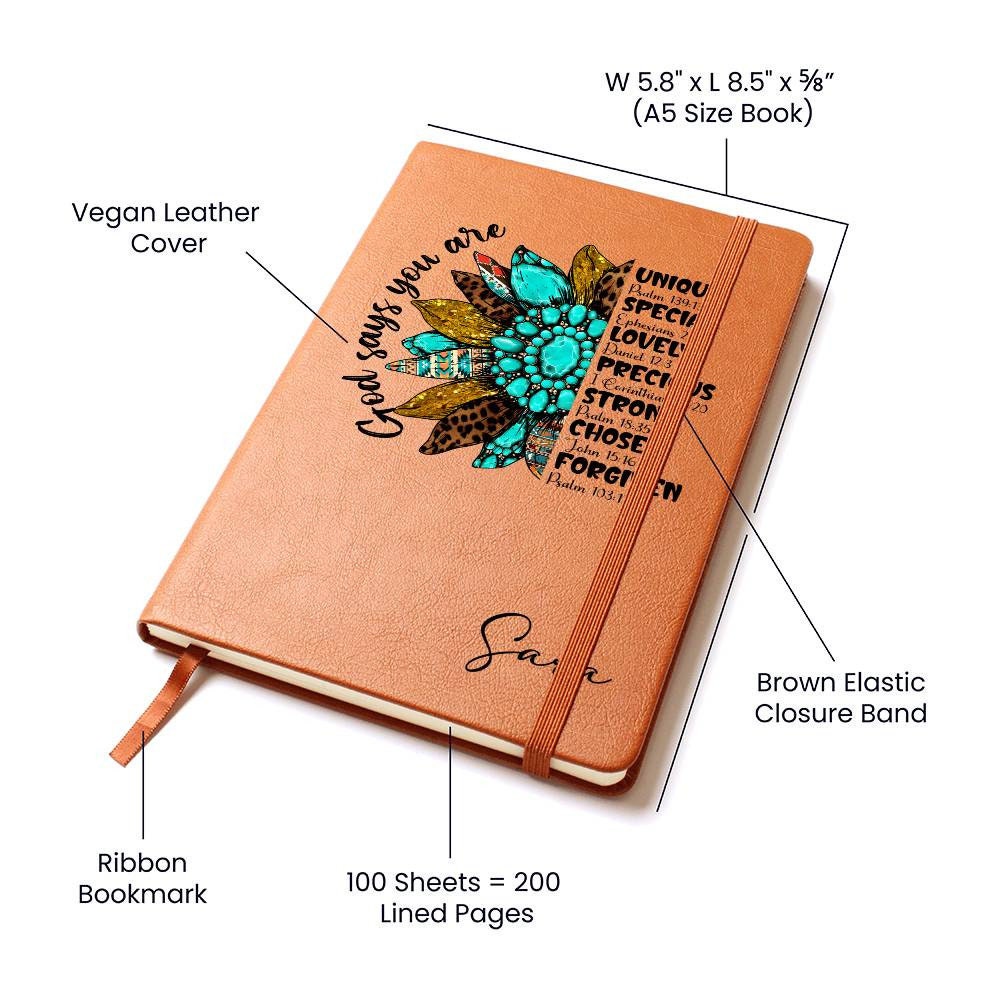 Crafted with eco friendly vegan leather, our personalized journal is a special treat for yourself or your loved one.
