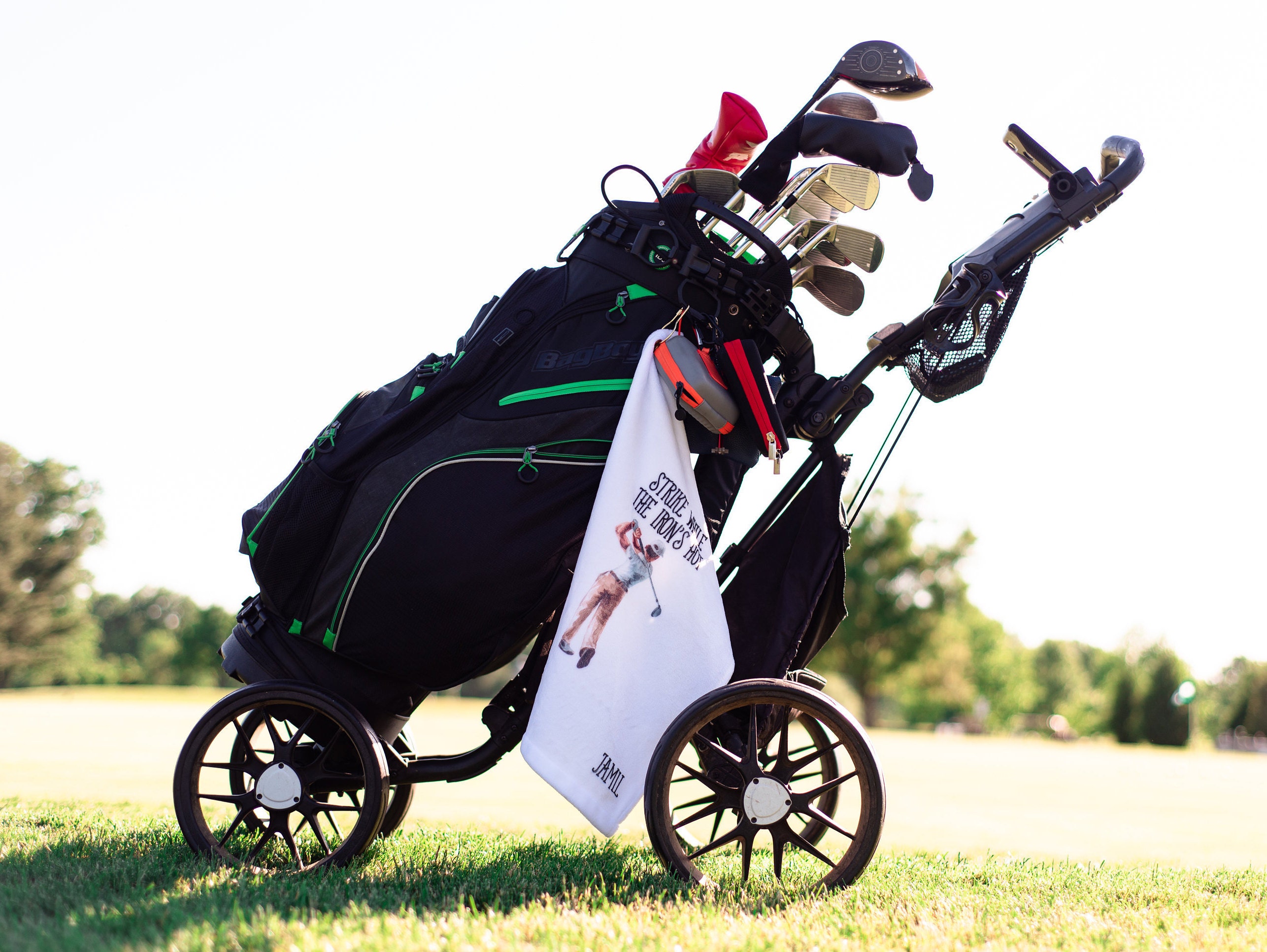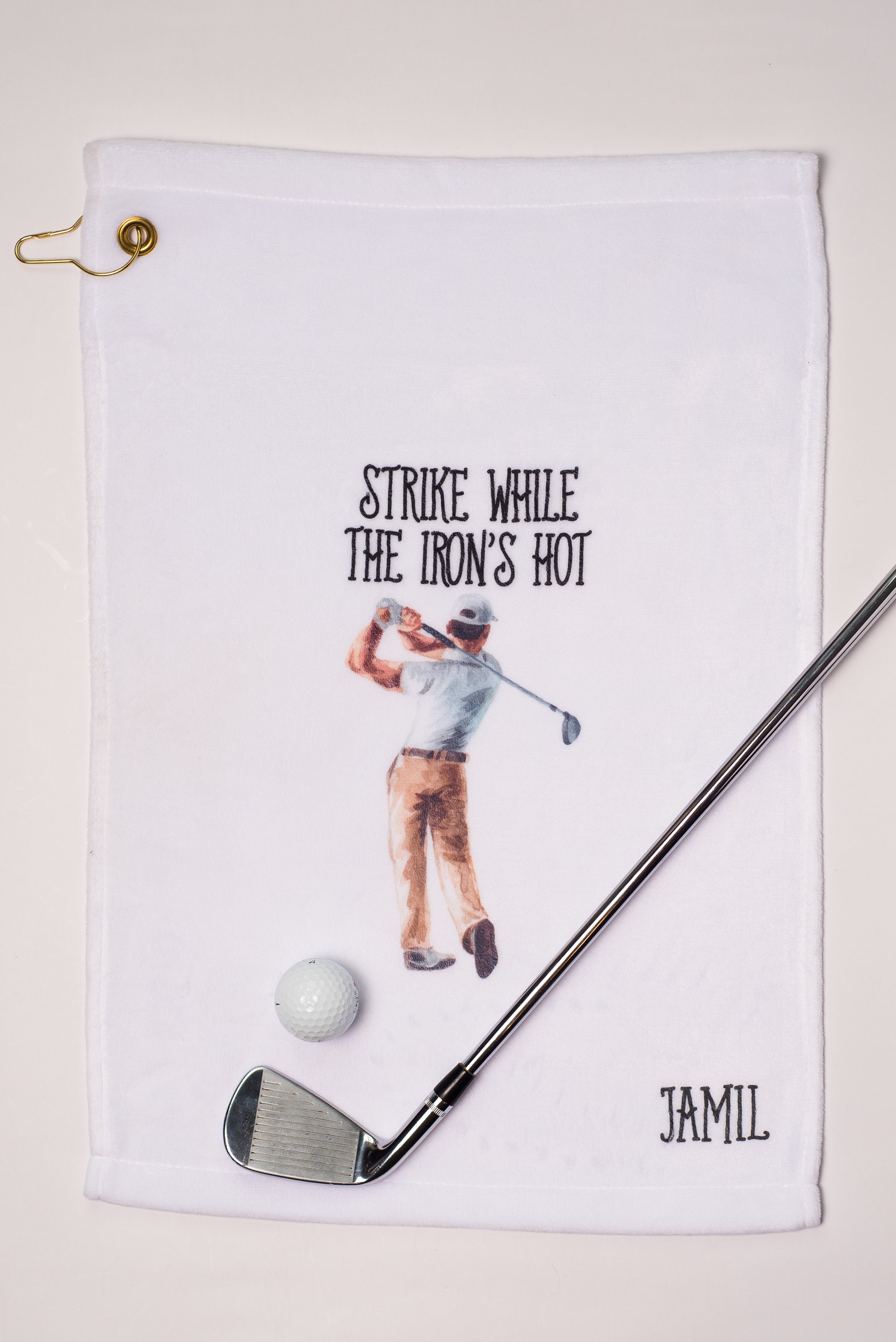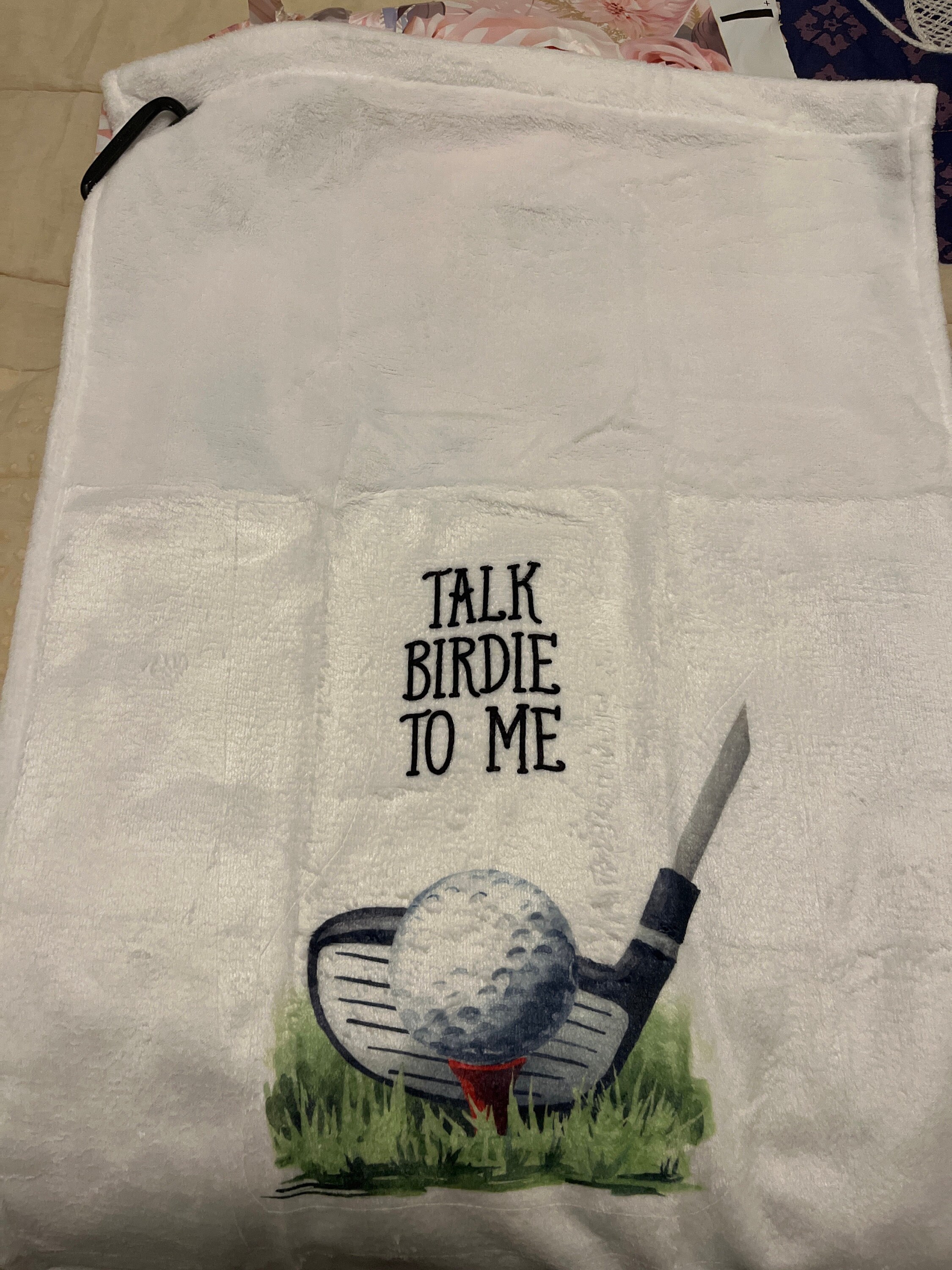 This ultra-soft towel is the perfect addition to your golf game! Hook easily attaches to your golf bag.