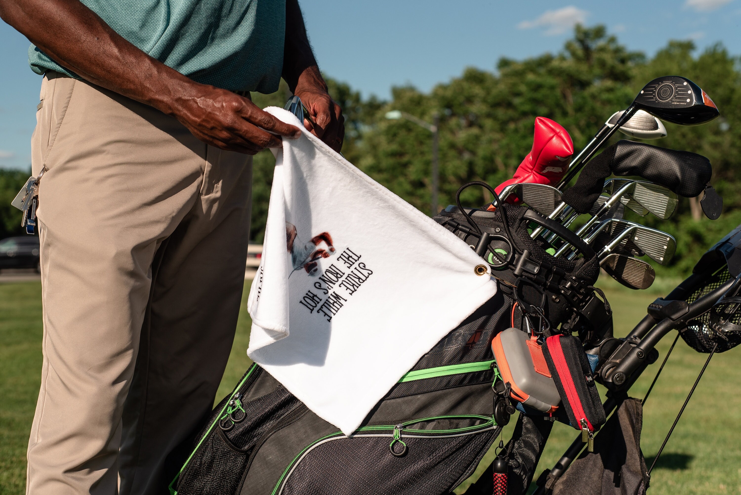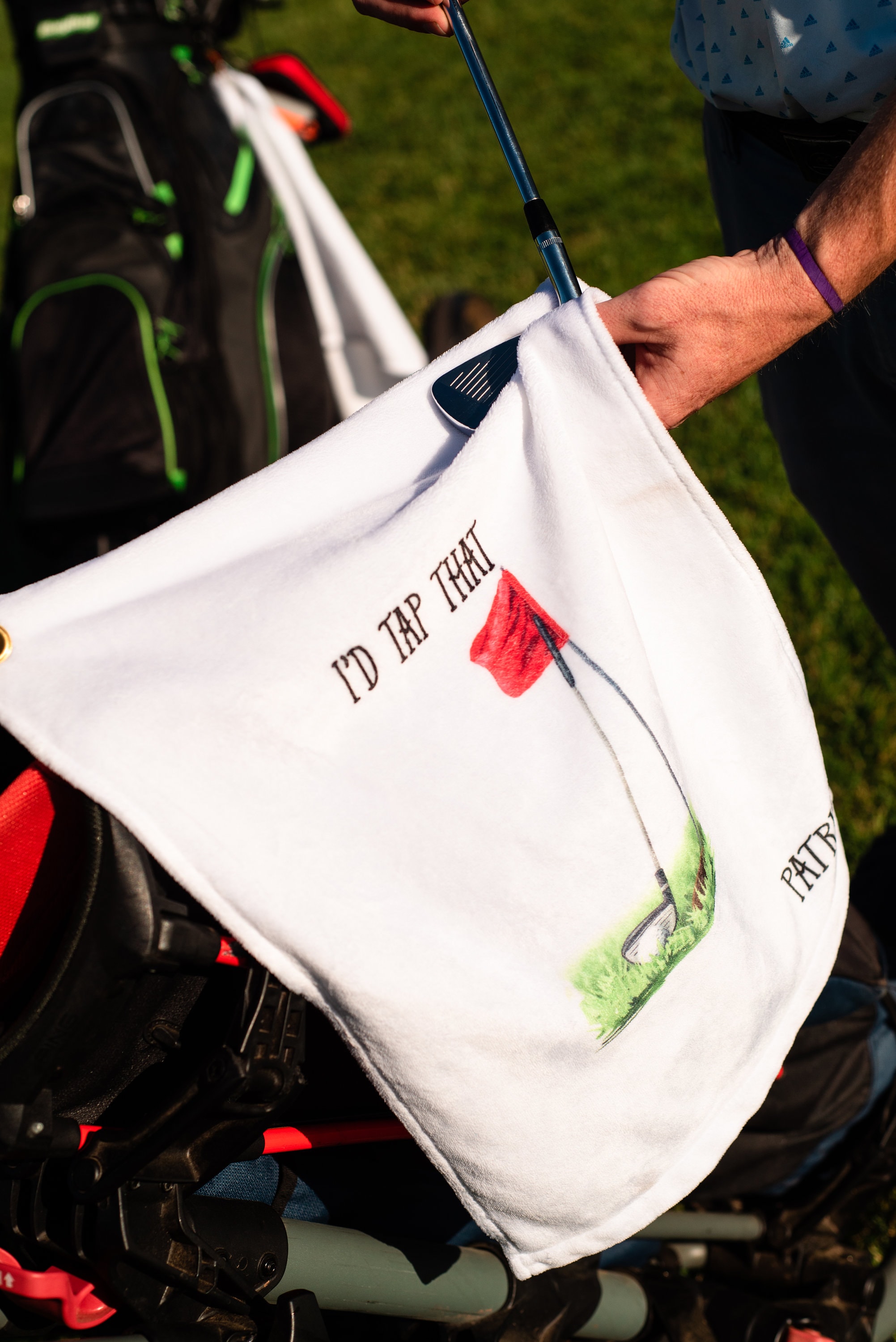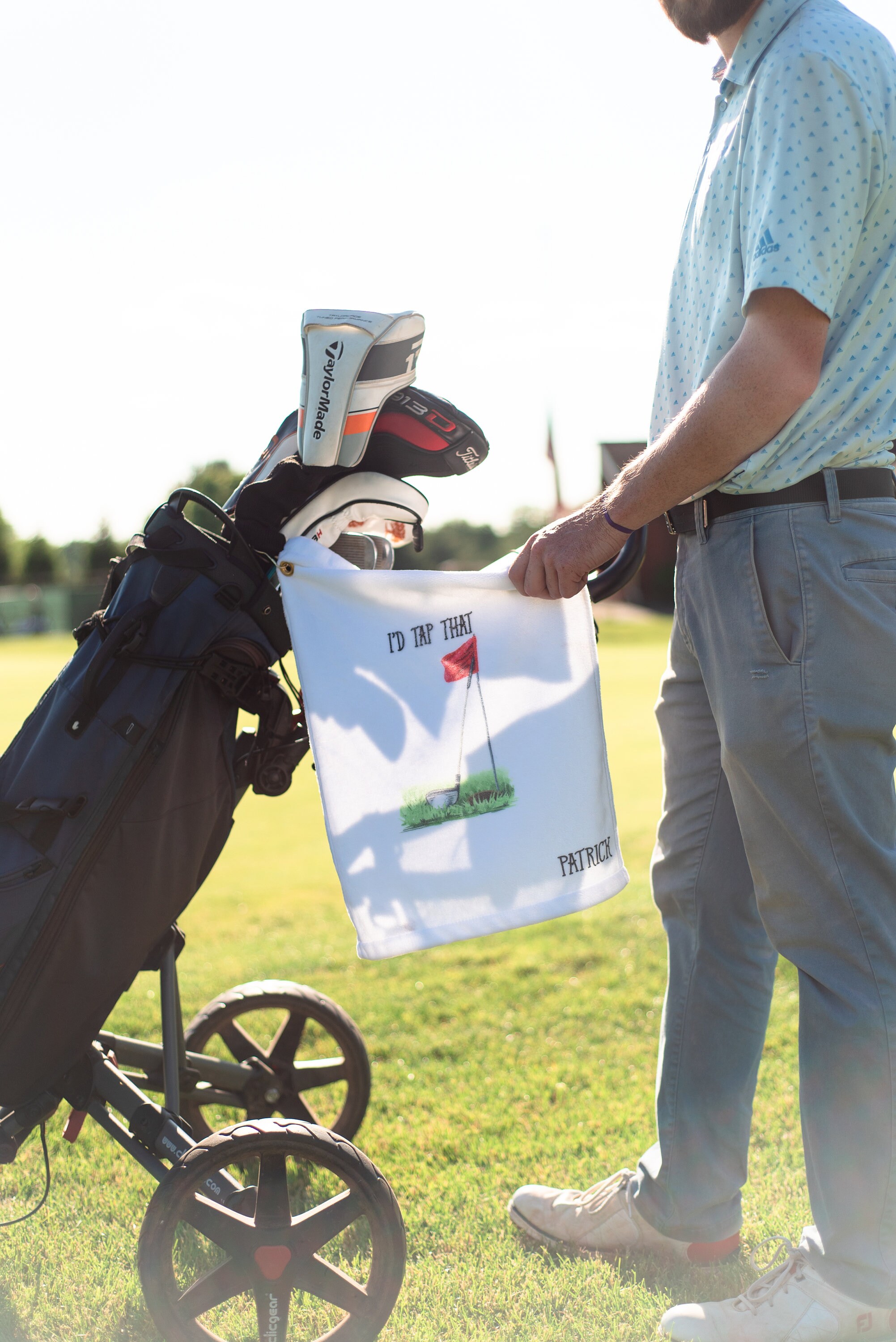 This ultra-soft towel is the perfect addition to your golf game! Hook easily attaches to your golf bag.