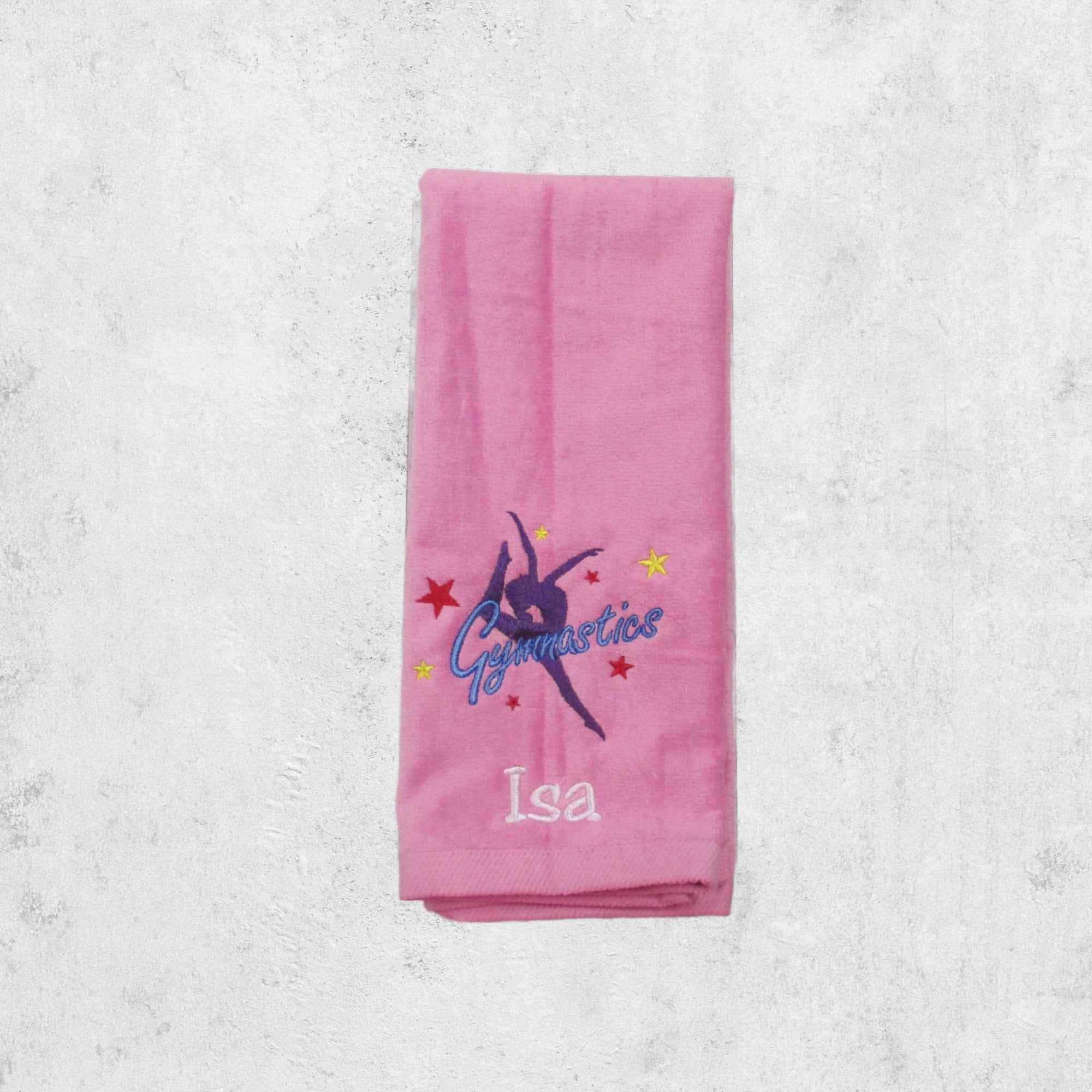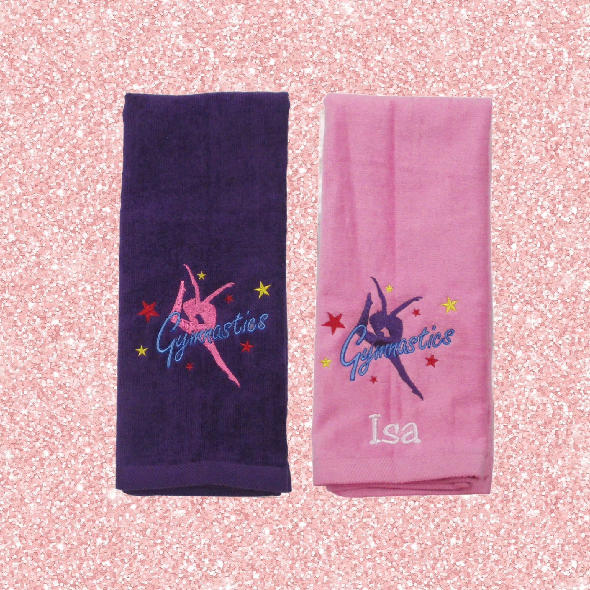 This Personalized Gymnastics Towel is sure to be a hit with everyone! They will love this towel with an embroidered name on it. It makes a perfect individual or team gift. This item can be ordered in different ways so please see the drop down boxes.