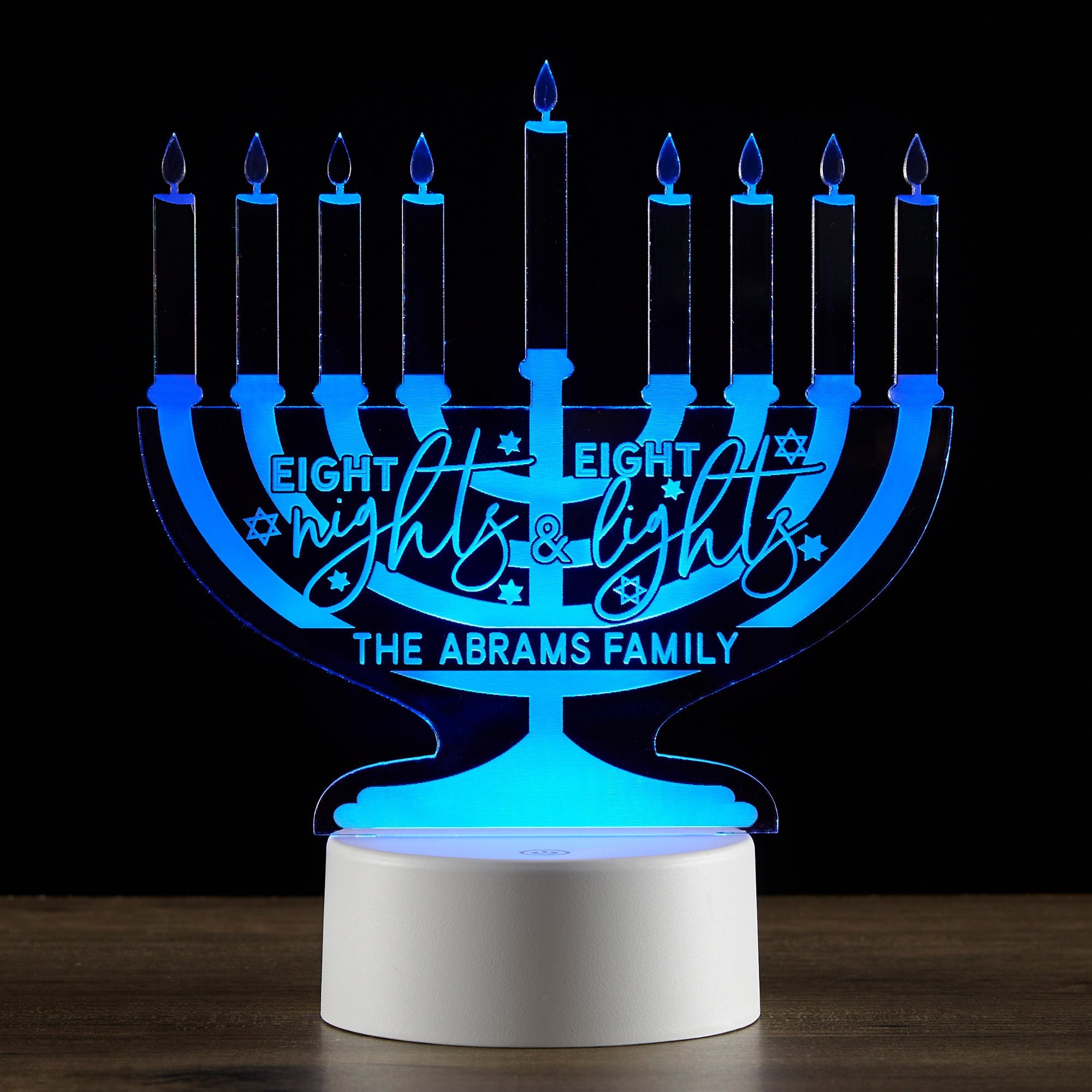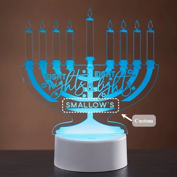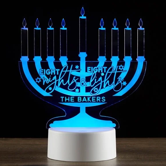 The Hanukkah Menorah Personalized LED Sign is a festive piece of Hanukkah dรฉcor for your home.