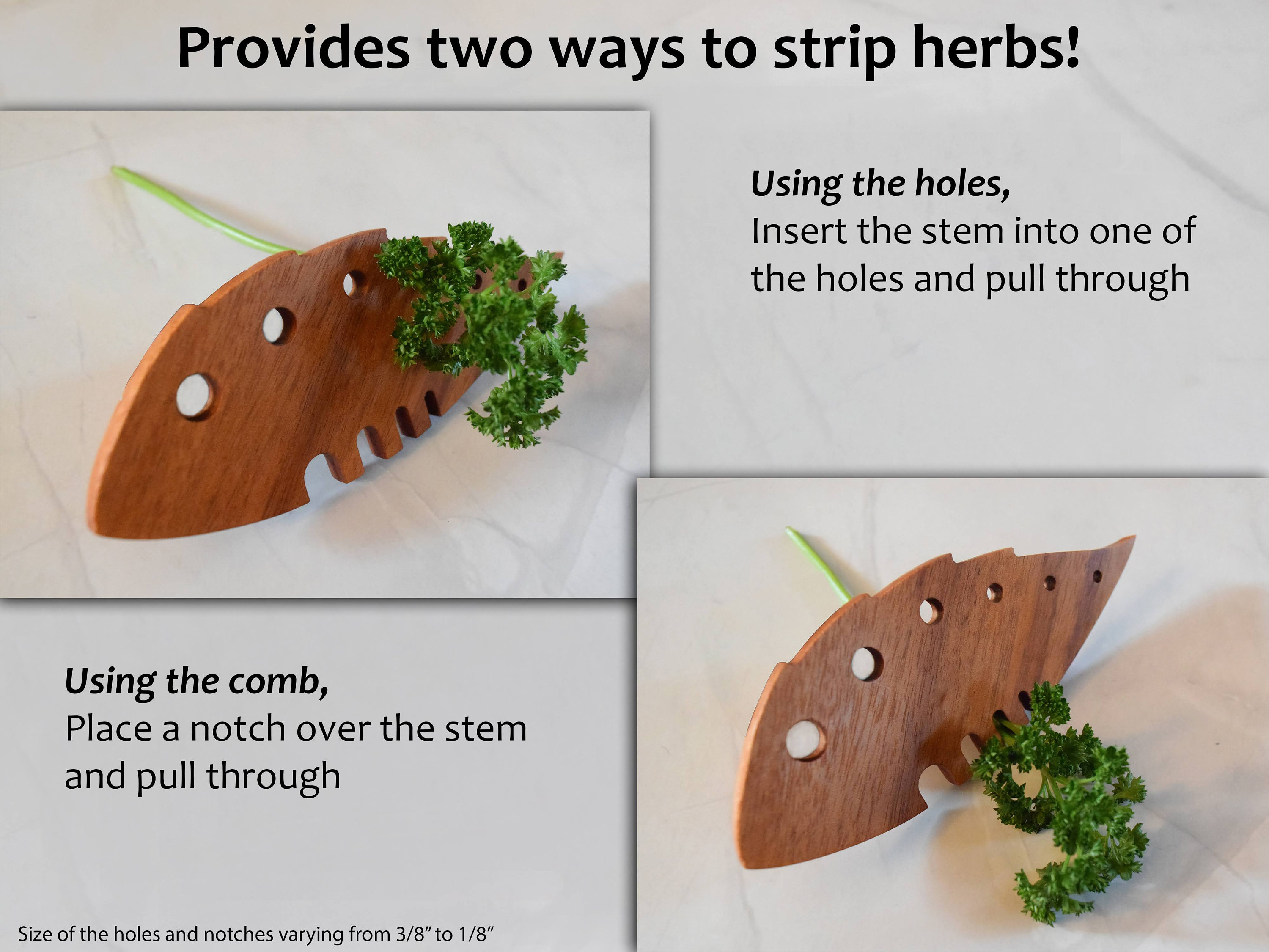 - Perfect for All Herbs: The notches and holes range from 1/8" to 3/8", making it ideal for a variety of stem sizes.