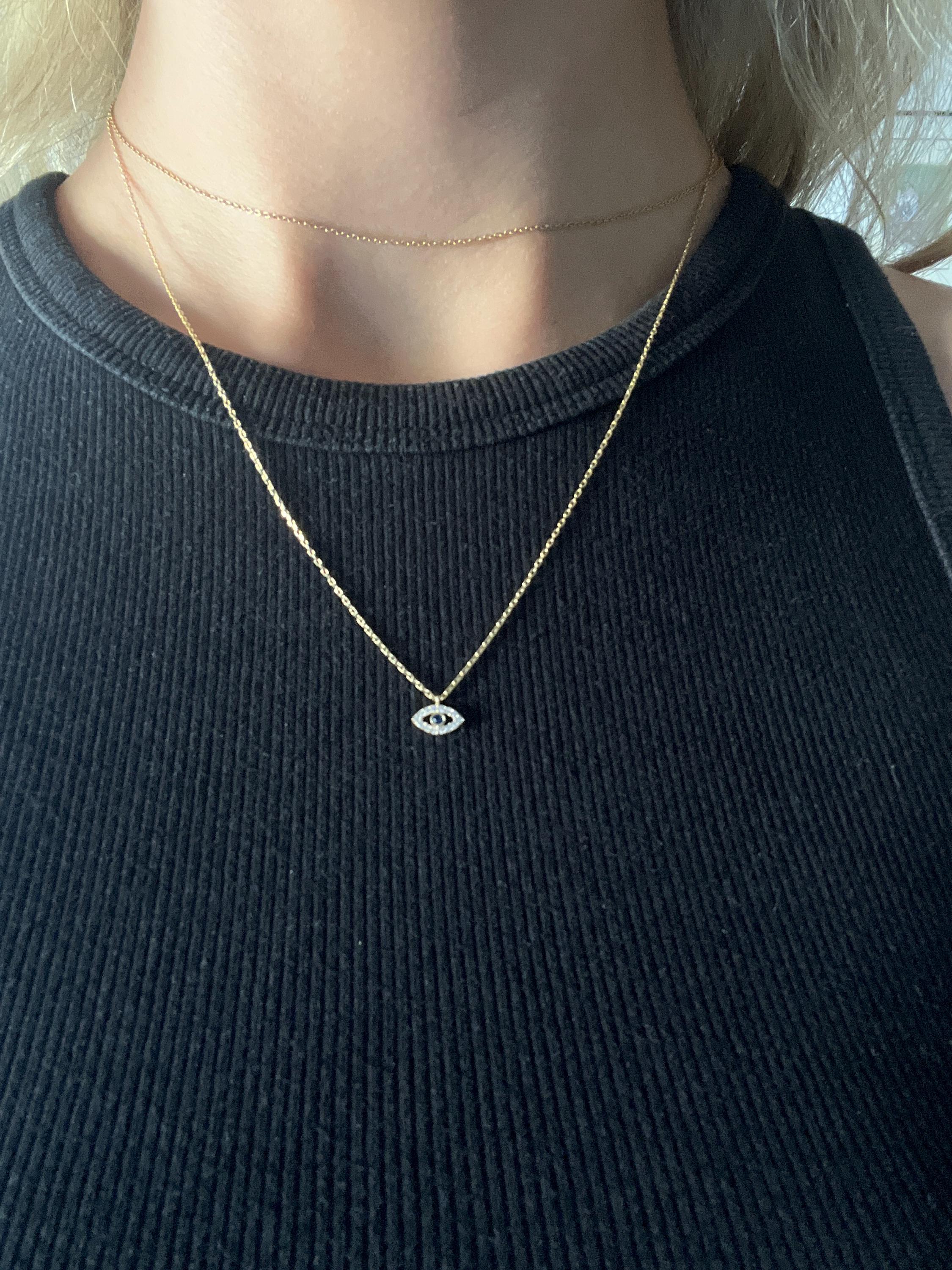 Embrace minimalist charm with our Evil Eye Necklace. Delicately designed, this necklace features a petite evil eye pendant that adds a touch of protection and style to any outfit. Crafted with care and attention to detail, it's a versatile piece suitable for everyday wear or special occasions. Upgrade your accessory collection with this timeless and meaningful necklace.