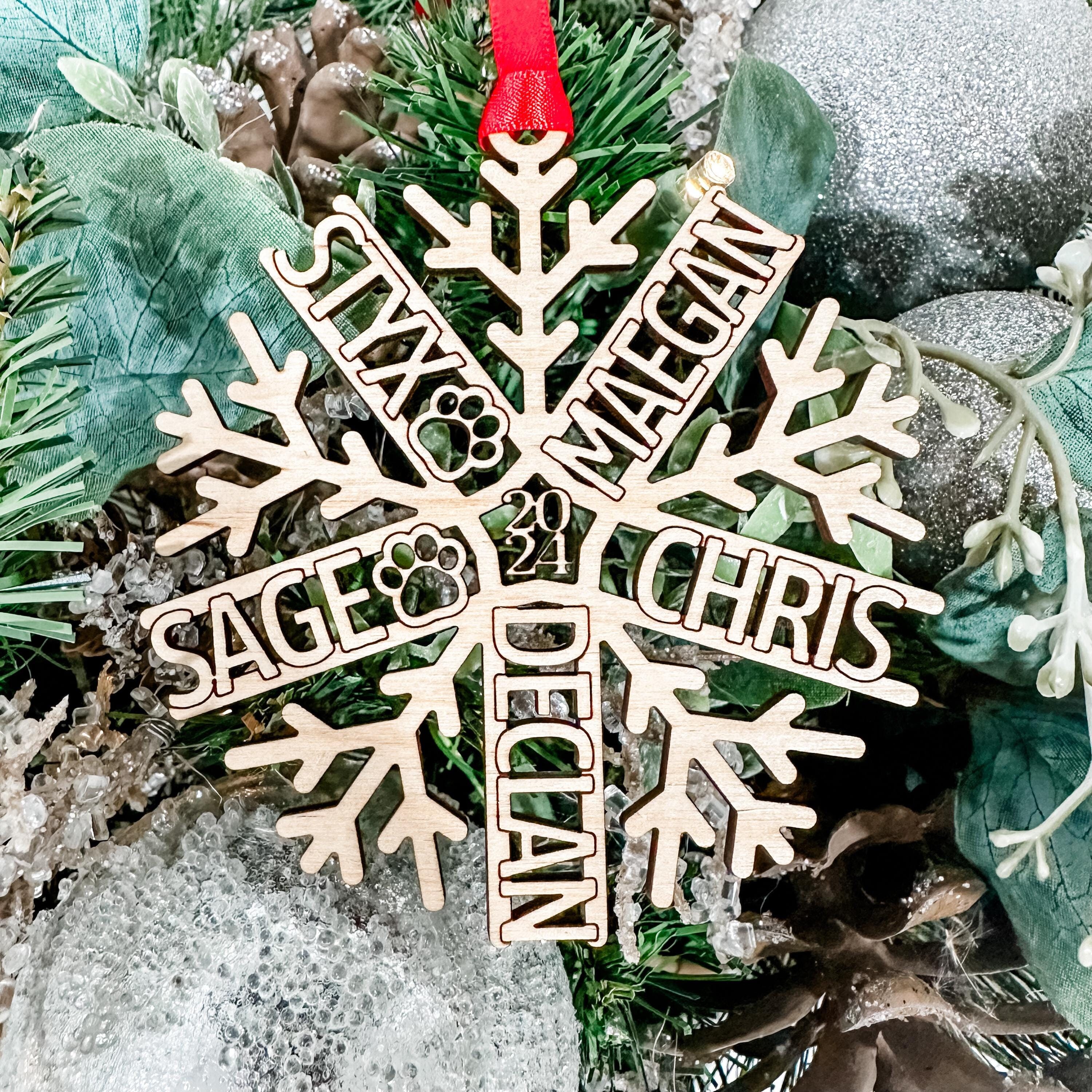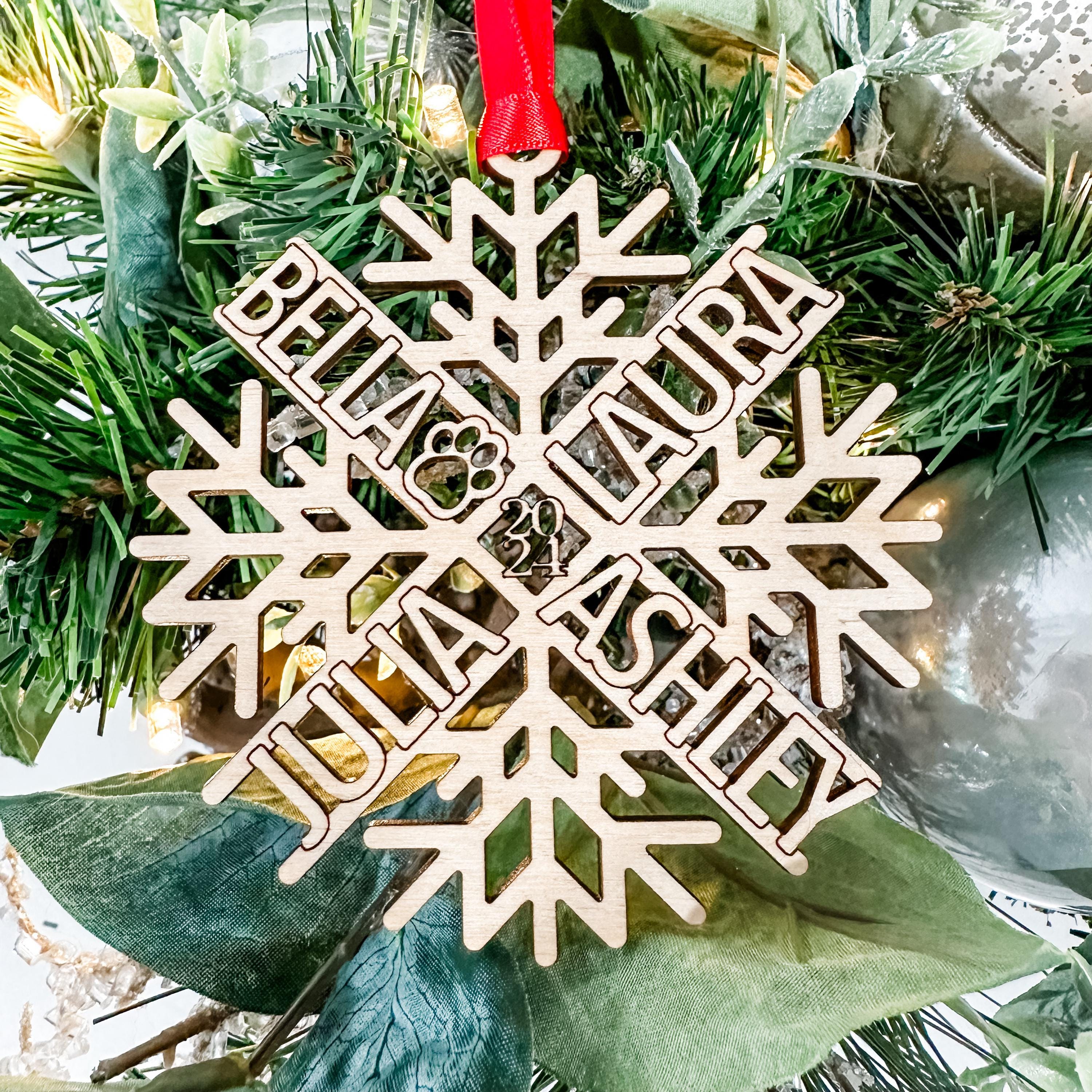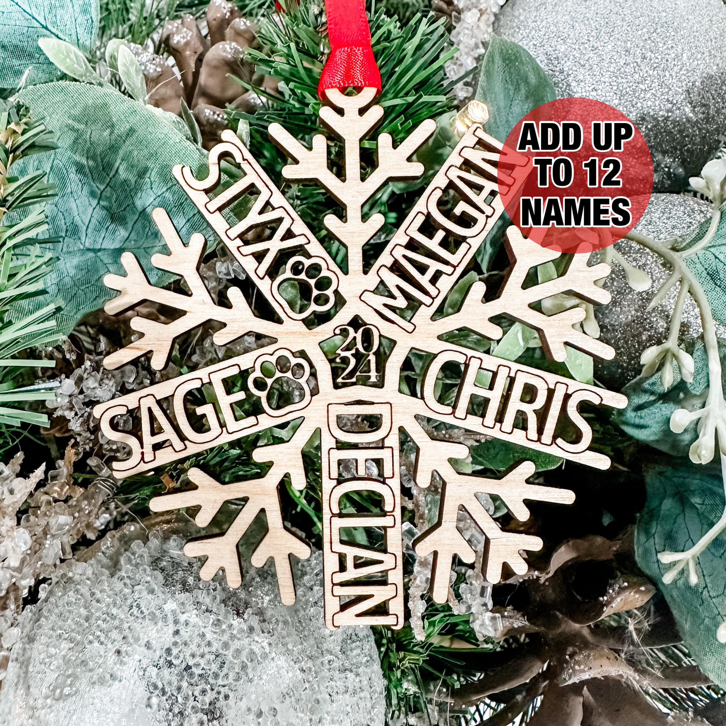 Name Snowflake Ornament, Family Name Ornament, Personalized Ornament, Grandparents Gift, Pet Name Ornament, Family Name Gift, Custom Names