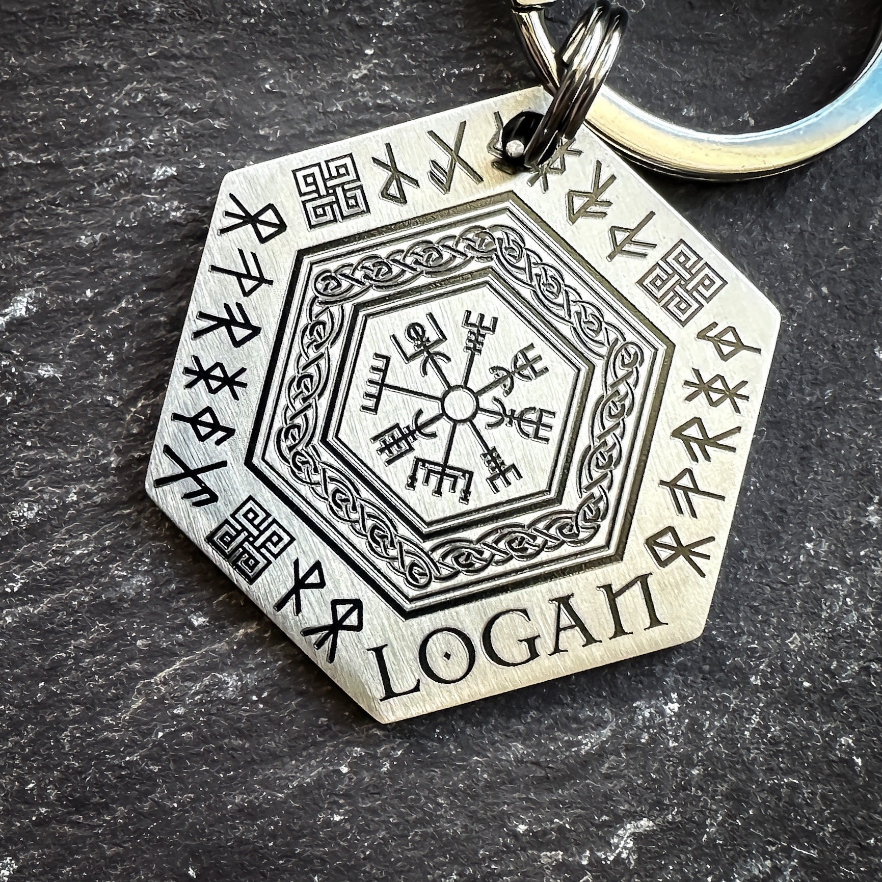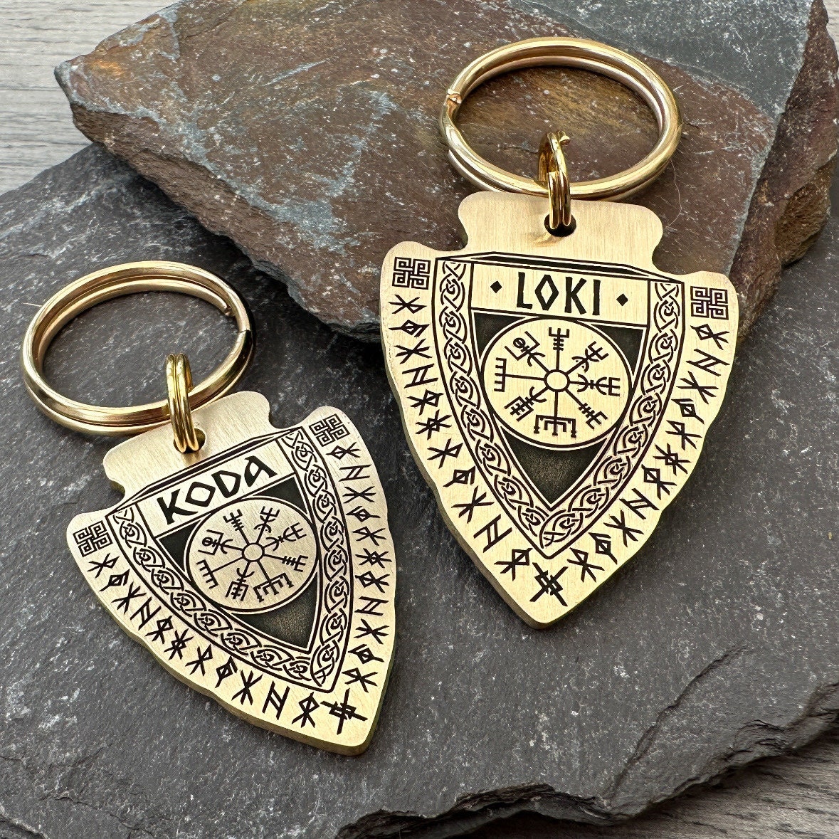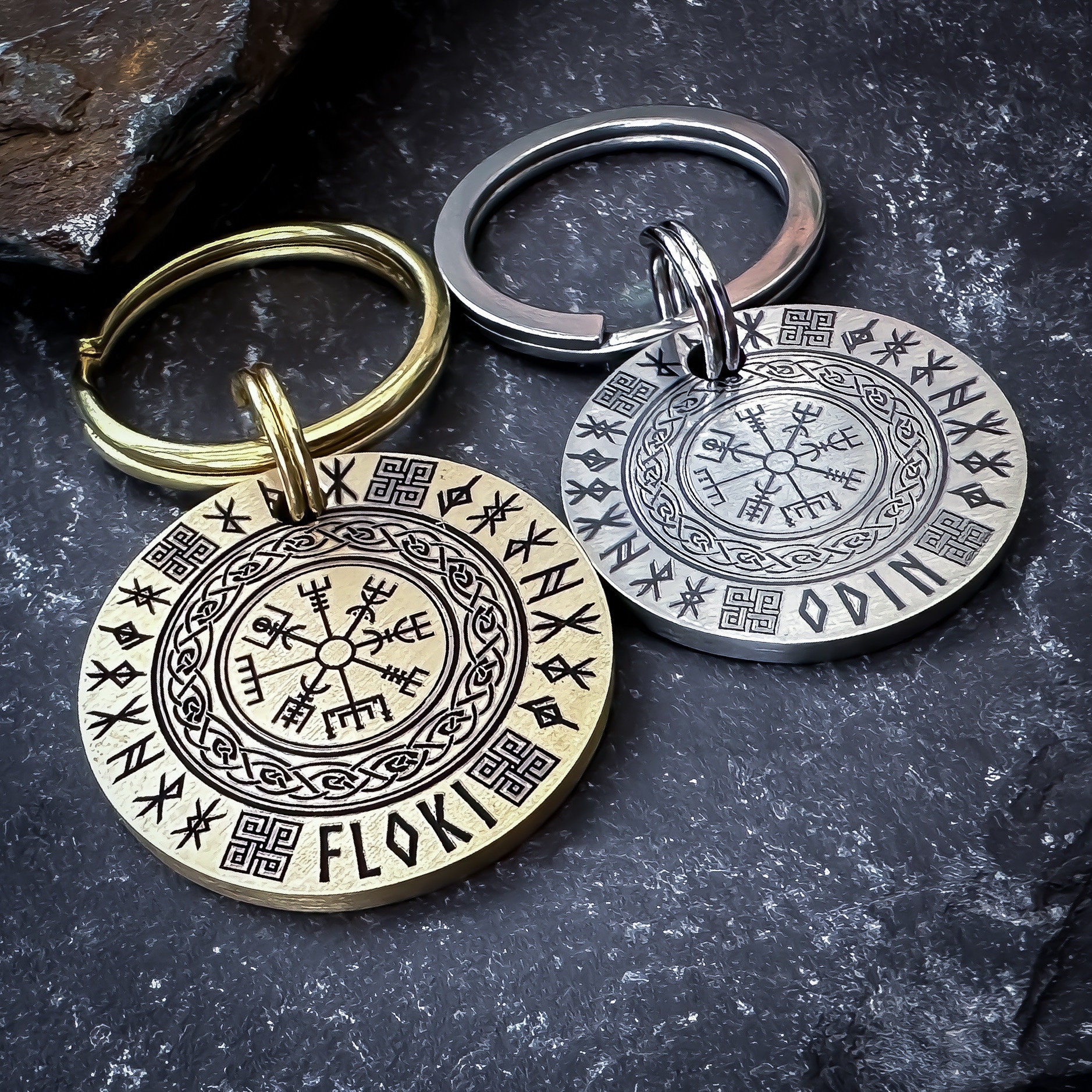 🛡️ Personalized Nordic Viking Dog Tag | Norse Rune & Vegvísir Protection Charm 🐾