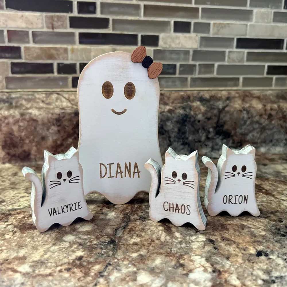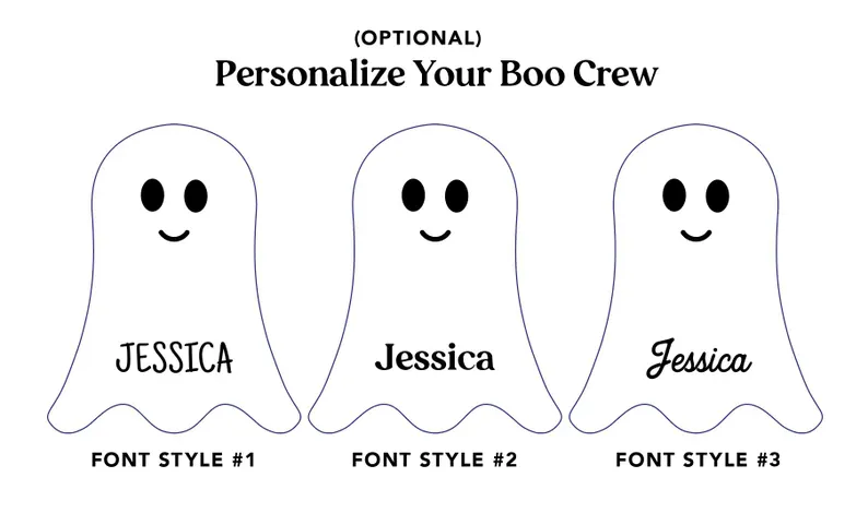 Personalize your ghosts! You can choose to have a first name engraved on the bottom of your ghost. Please see the font options and send your choice along with the names.