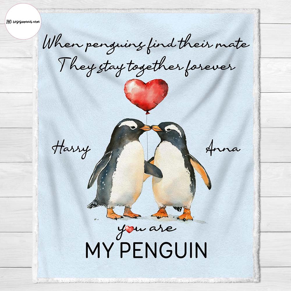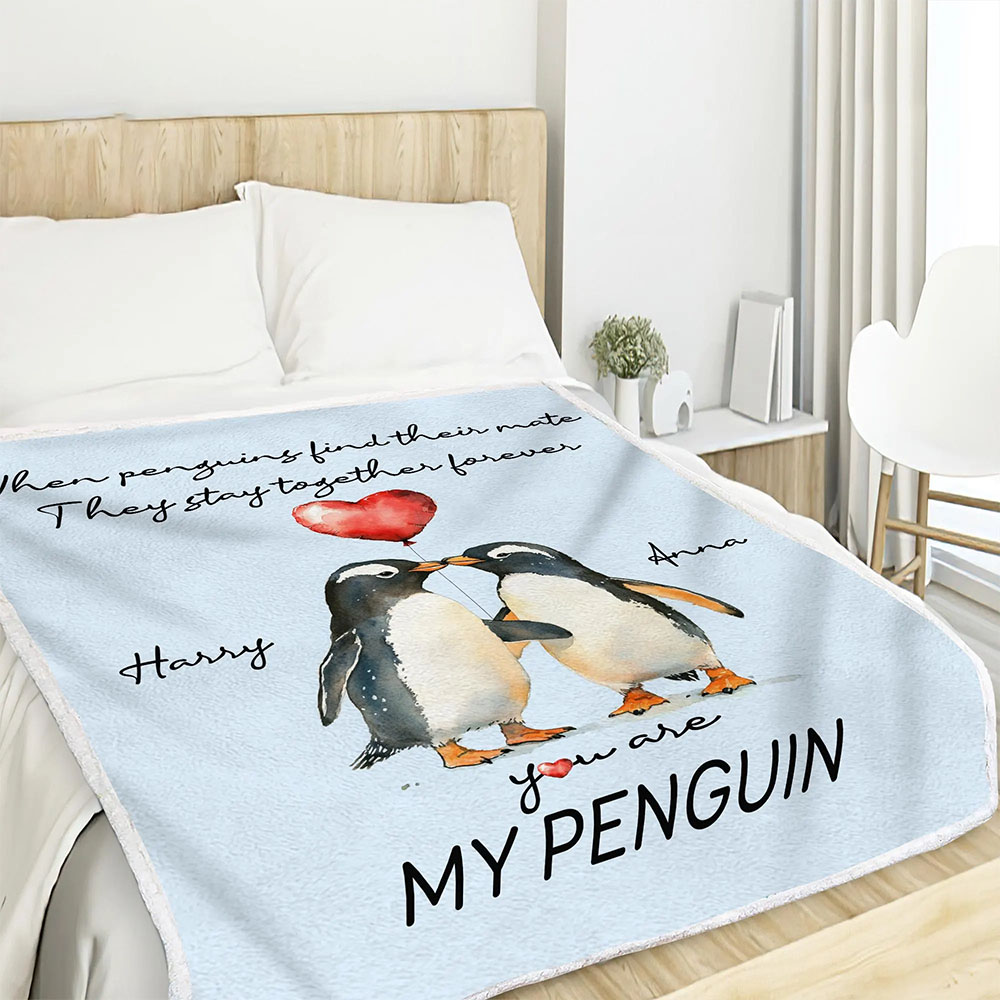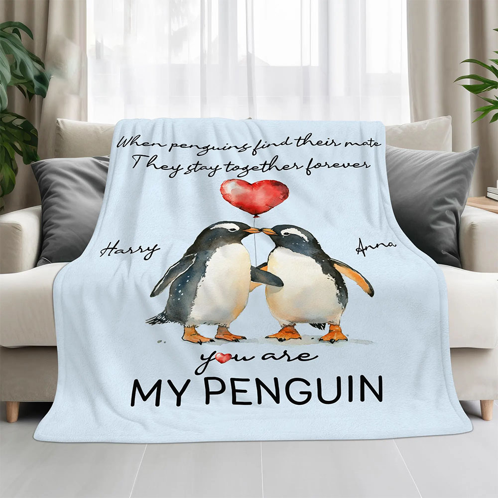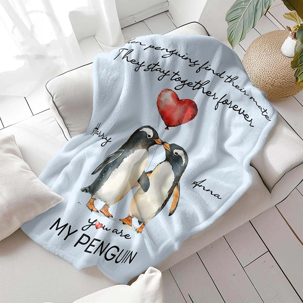 Personalized Penguin Couple Throw Blanket, Romantic I Love You Gifts, Christmas, Valentines Day Gifts, Birthday Gifts for Boyfriend or Girlfriend, Wedding Gifts for Couple Wife Husband