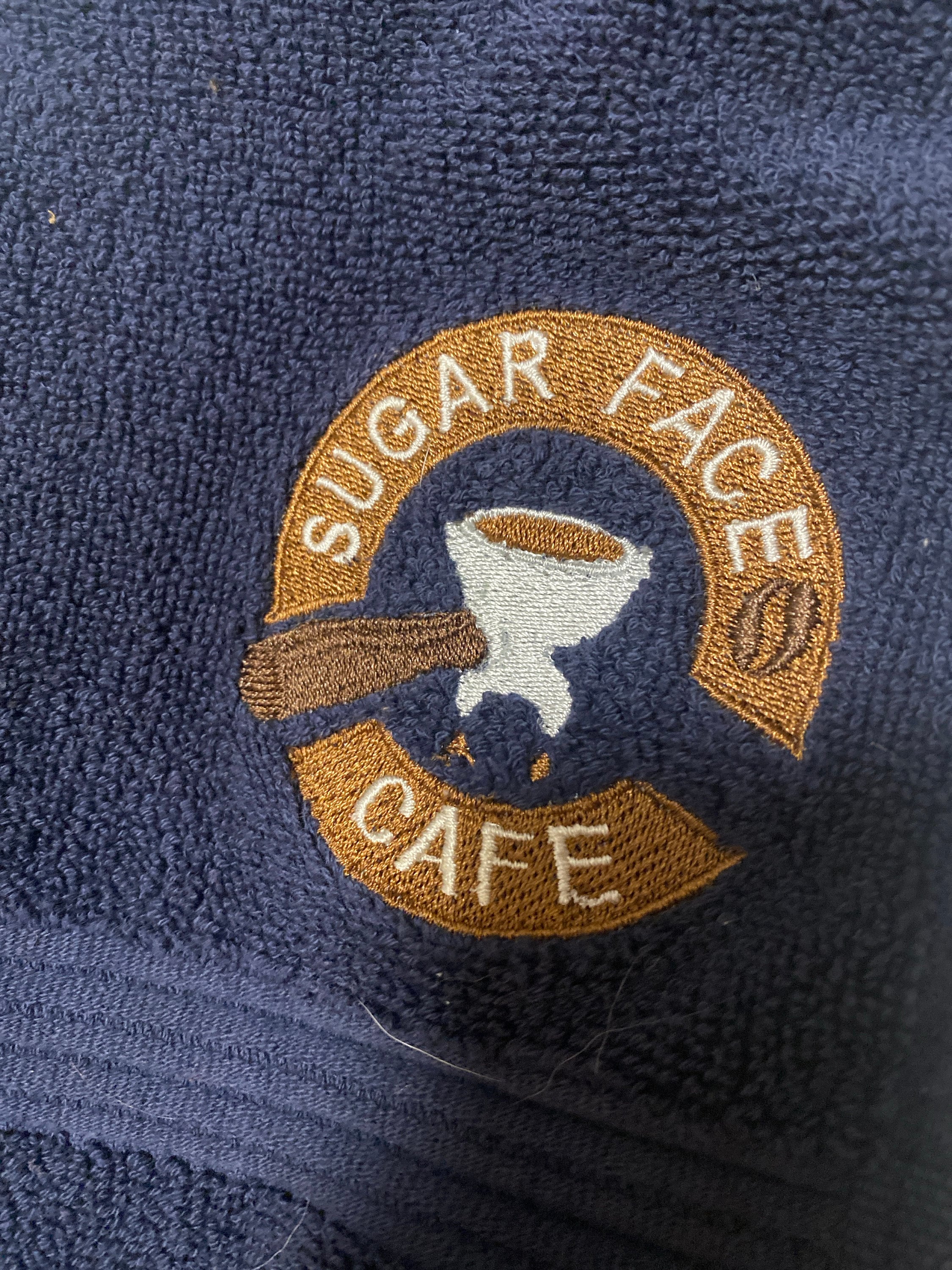 Care Instructions: Cool wash and dry flat. Iron on reverse of embroidery. The towel will fade with multiple washes.