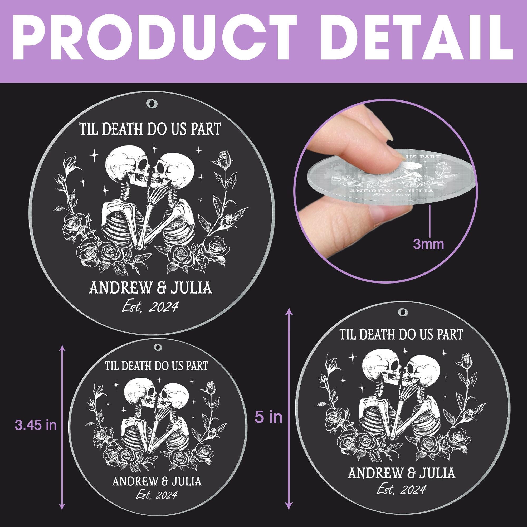 Introducing our Til Death Do Us Part Personalized Skeleton Anniversary Ornament—the perfect blend of romance and gothic charm! Ideal for Halloween lovers, this unique ornament makes a thoughtful gift for anniversaries, weddings, or any special occasion.