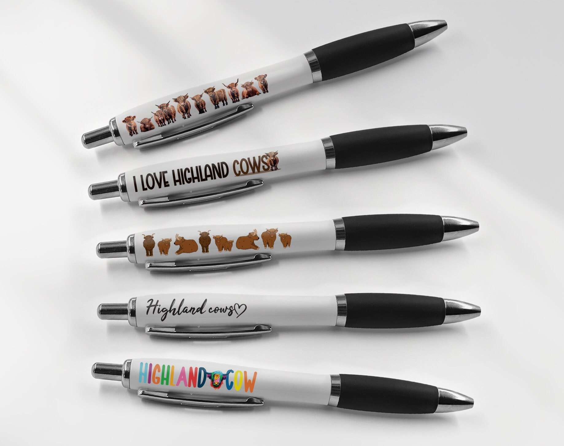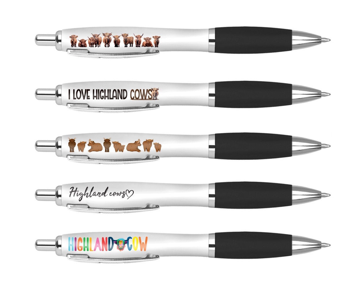 5 x pens with different designs as shown in image.